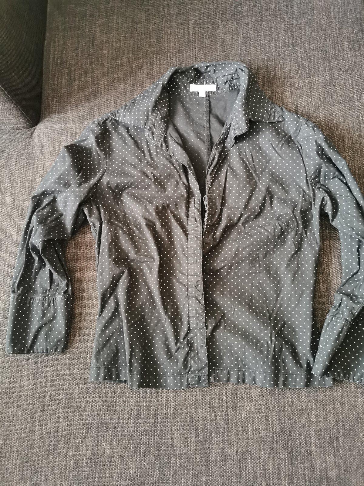 Čierna blúzka s bielymi bodkami. Zapínanie na háčiky. Krásne ukáže na postave.