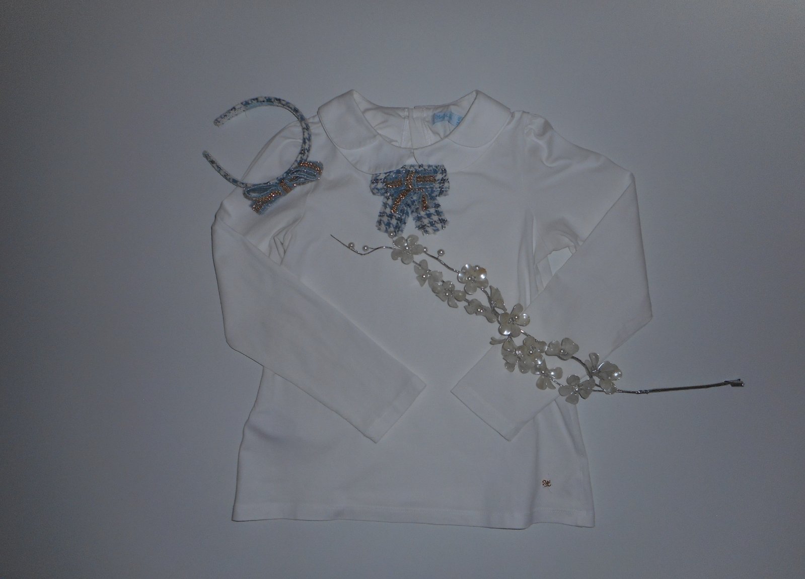 po jednom dieťati, v 100% stave, zapínanie vzadu na 2 gombíky, zakúpené nové, mašlička sa dá pri praní dole, vhodné do školy, na príležitosť,PC-33eur, cena je uvedená bez čelenky