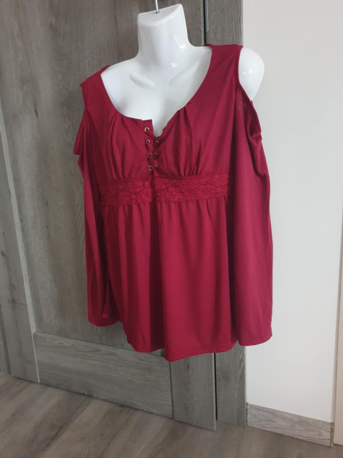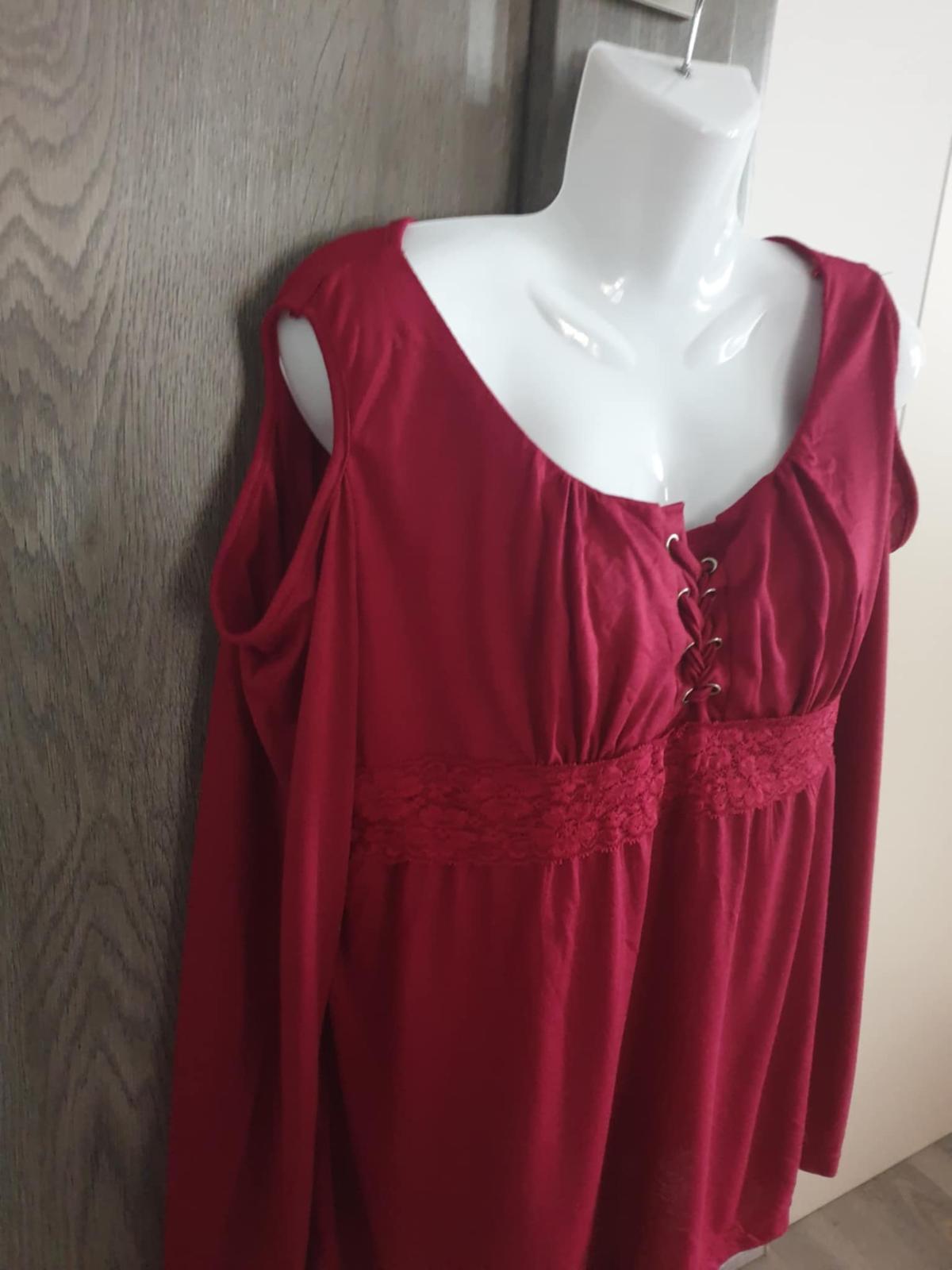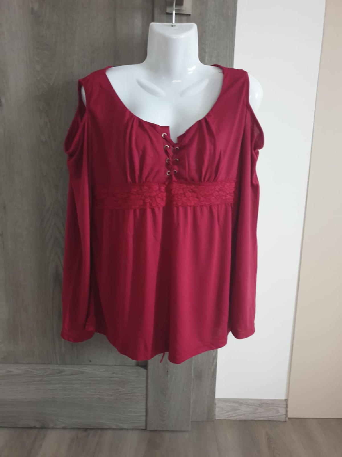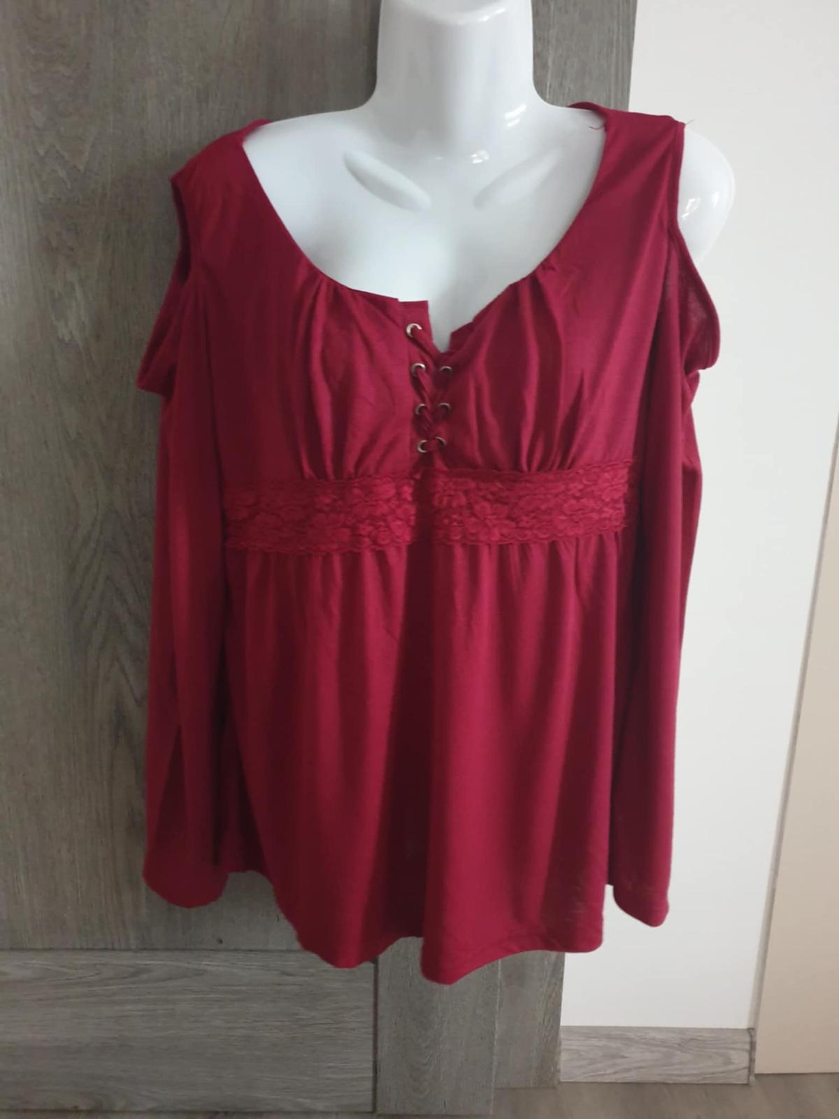 dámska blúzka, veľkosť píše 36, ale podľa mňa určite väčšia, vínovočervenej farby, dlhý rukáv, volánik okolo krku aj rukávov, voľnejší strih, dobrý stav