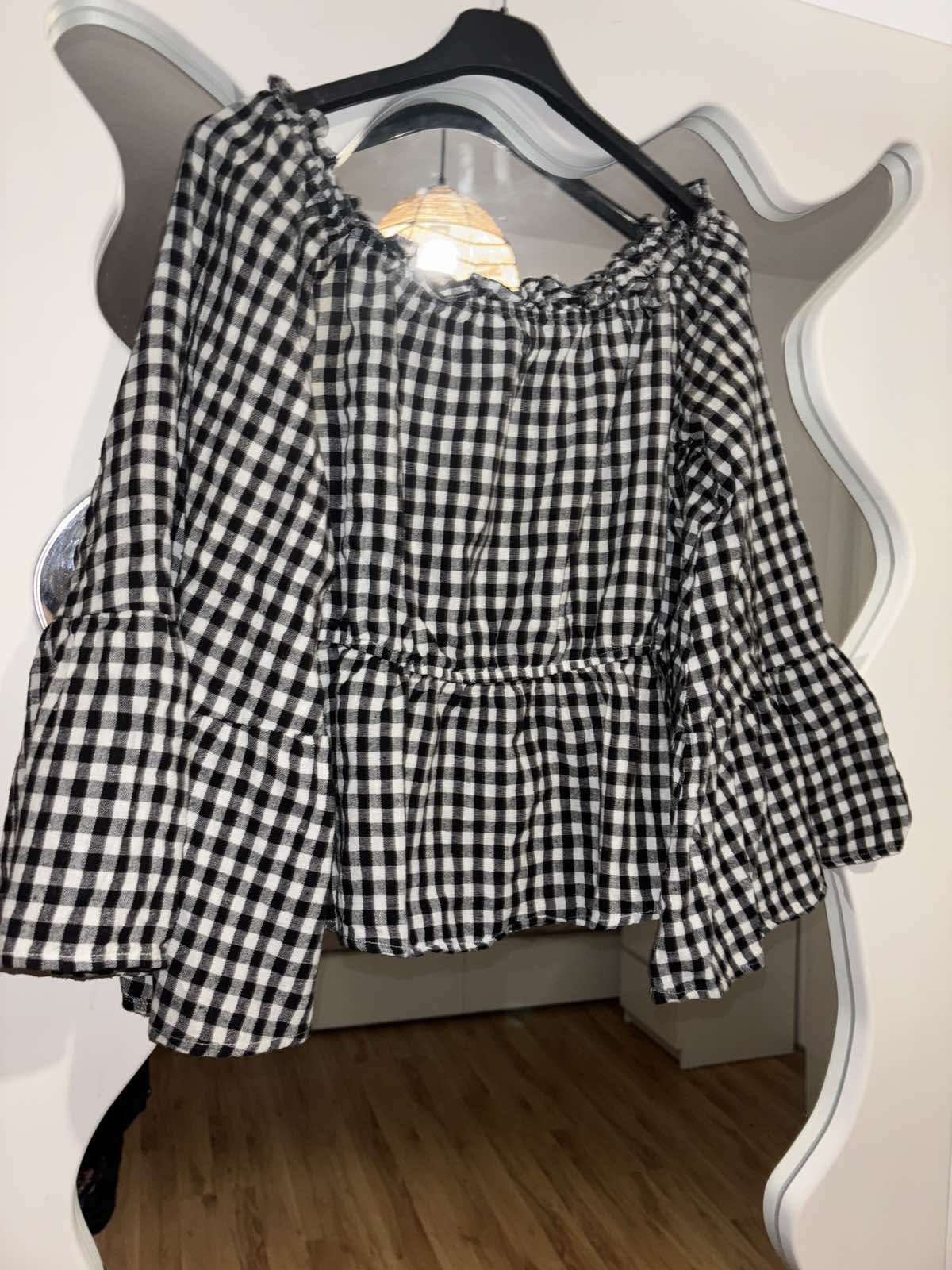Bez známok nosenia, off shoulder, nepruzi, veľkosť M, s.pod pazuchami cca 53 cm, v páse gumka, d. 51 cm