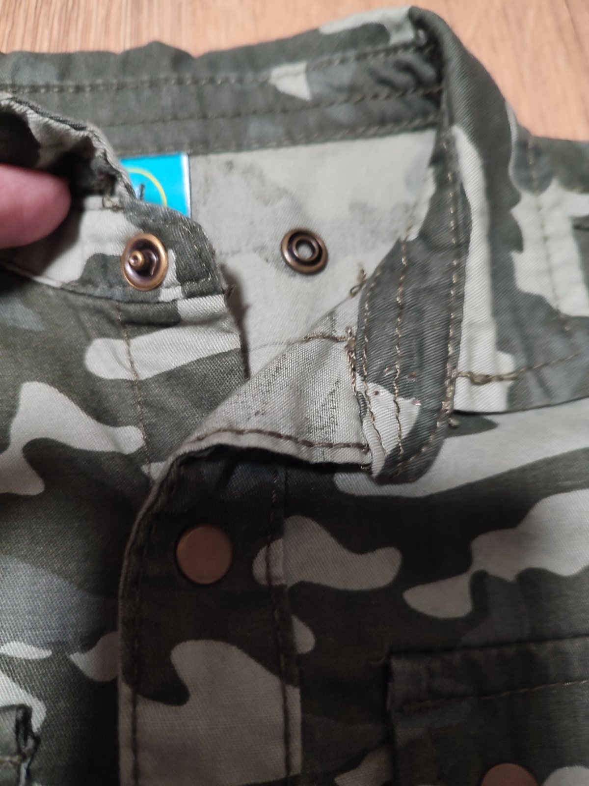 Predám používanú ale zachovalú maskačovú košeľu. Číslo píše 116. Jediná chybička je, že tá kapča hore pri krku je odopnuta. Je tam 2x prehnuta látka a nedrží to tam.Syn to však nikdy až pri krku nemal zapnuté , čiže nás to nejak neovplyvňovalo. Cena je bez poštovného