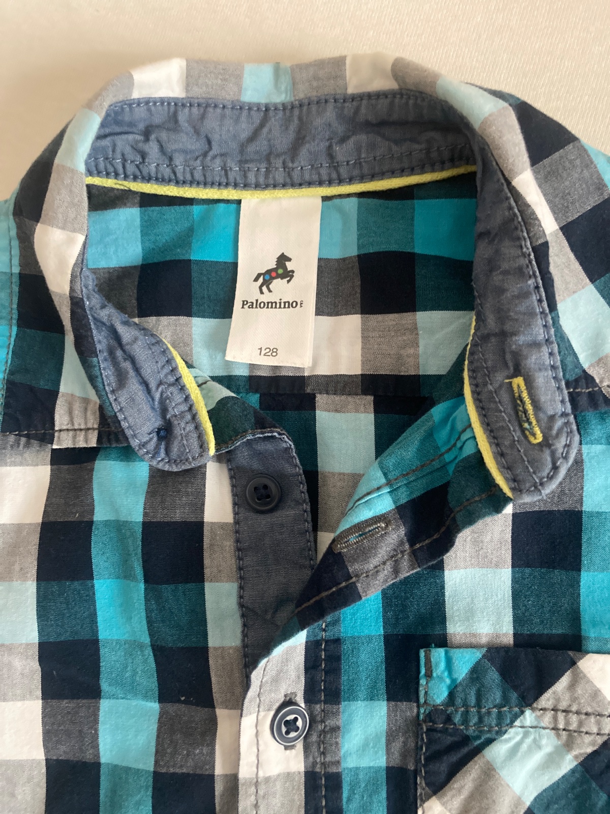 Fešácka kockovaná košeľa s krátkym rukávom zn. Palomino, veľkosť na štítku uvedená 128. Rozmery sú na foto.