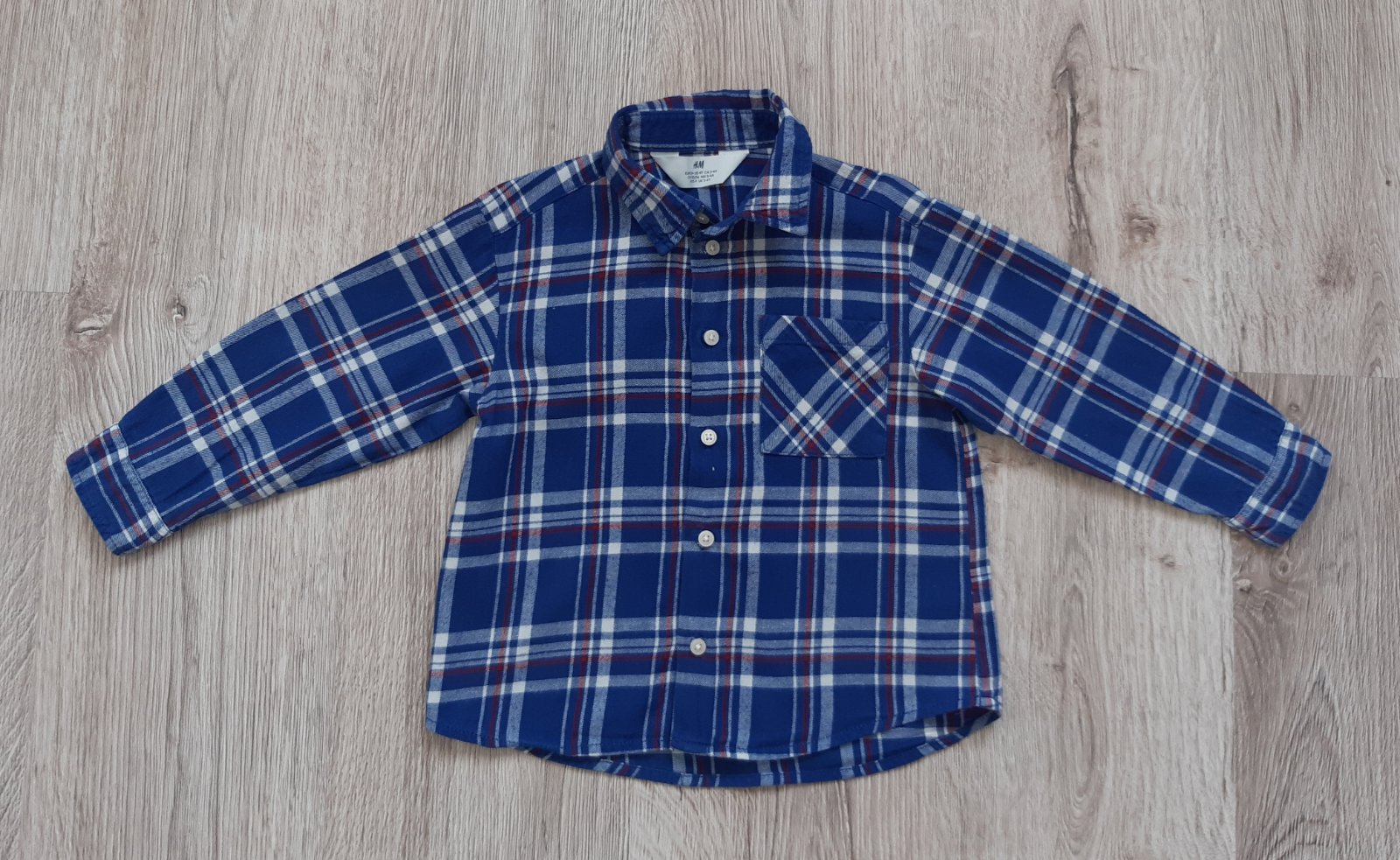Frajerská chlapčenská košeľa vo výbornom nosenom stave (bez dierok, fliačikov a žmolkov; sem-tam trčiaca nitka). Značka: HM; veľkosť: 104 (3 - 4 roky).