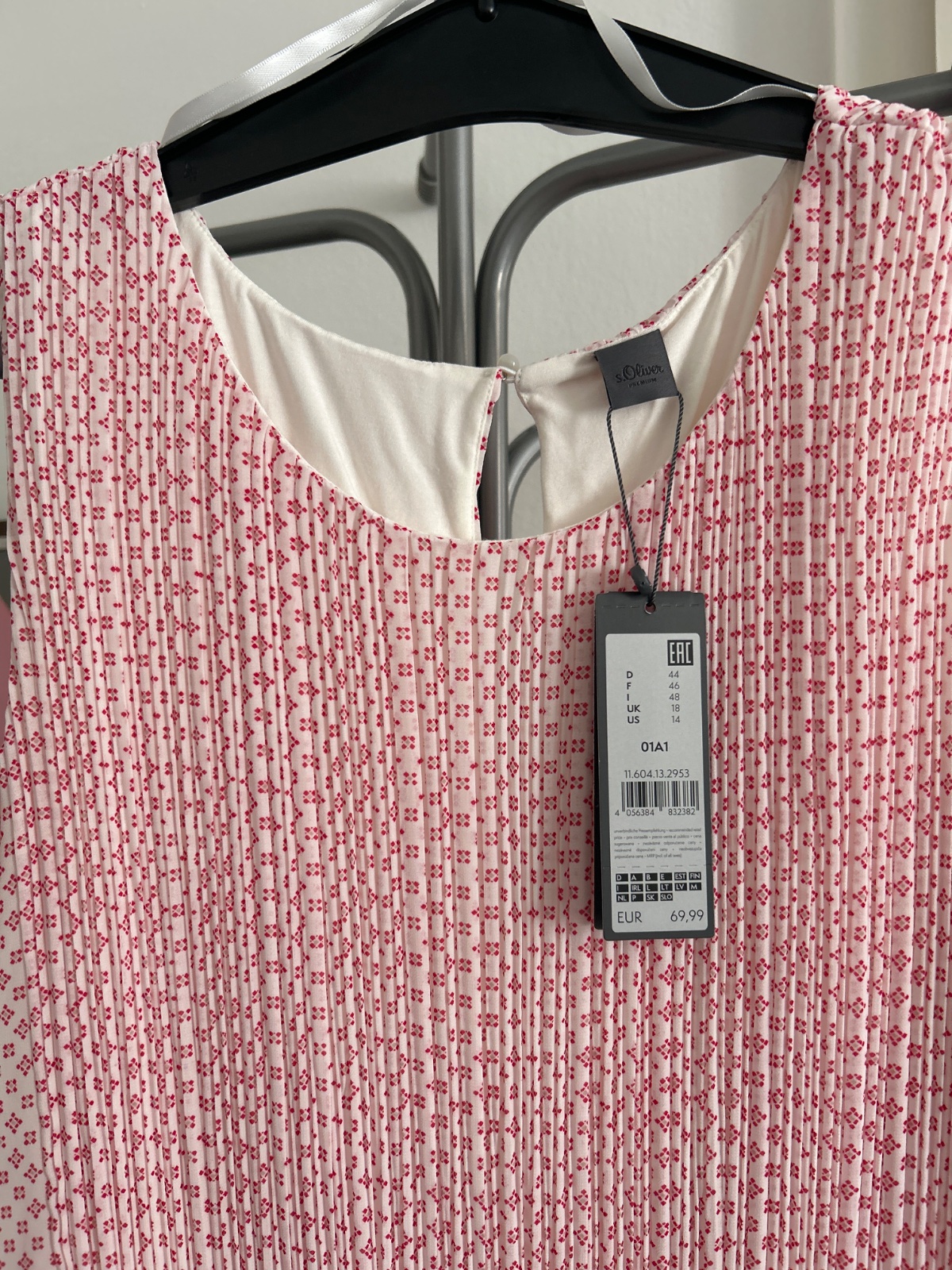Nenosená tunika. Dĺžka 67 cm, šírka pod pazuchami 64 cm, rukáv od krku 74 cm.