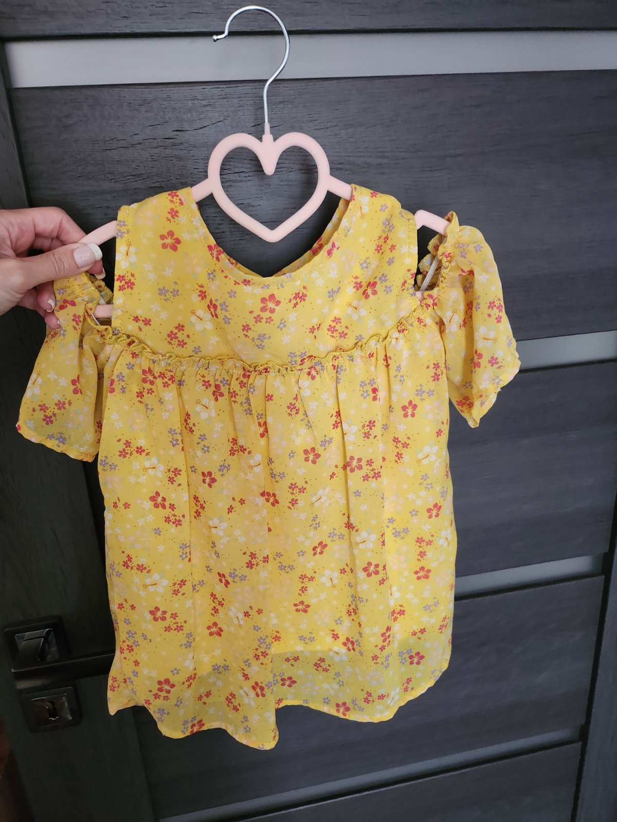 Dcera mala mozno 2x,pod pazuchami cca 31,,, dlzka od ramena 47, šifonova