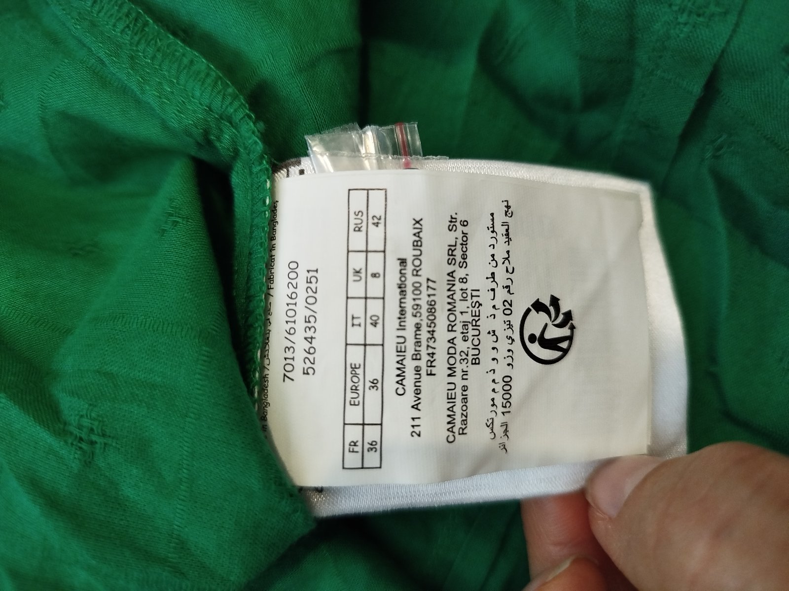 Raz oblečená košeľa zn. Camaieu vo veľkosti 36. Pekná zelená farba a jemný vzor