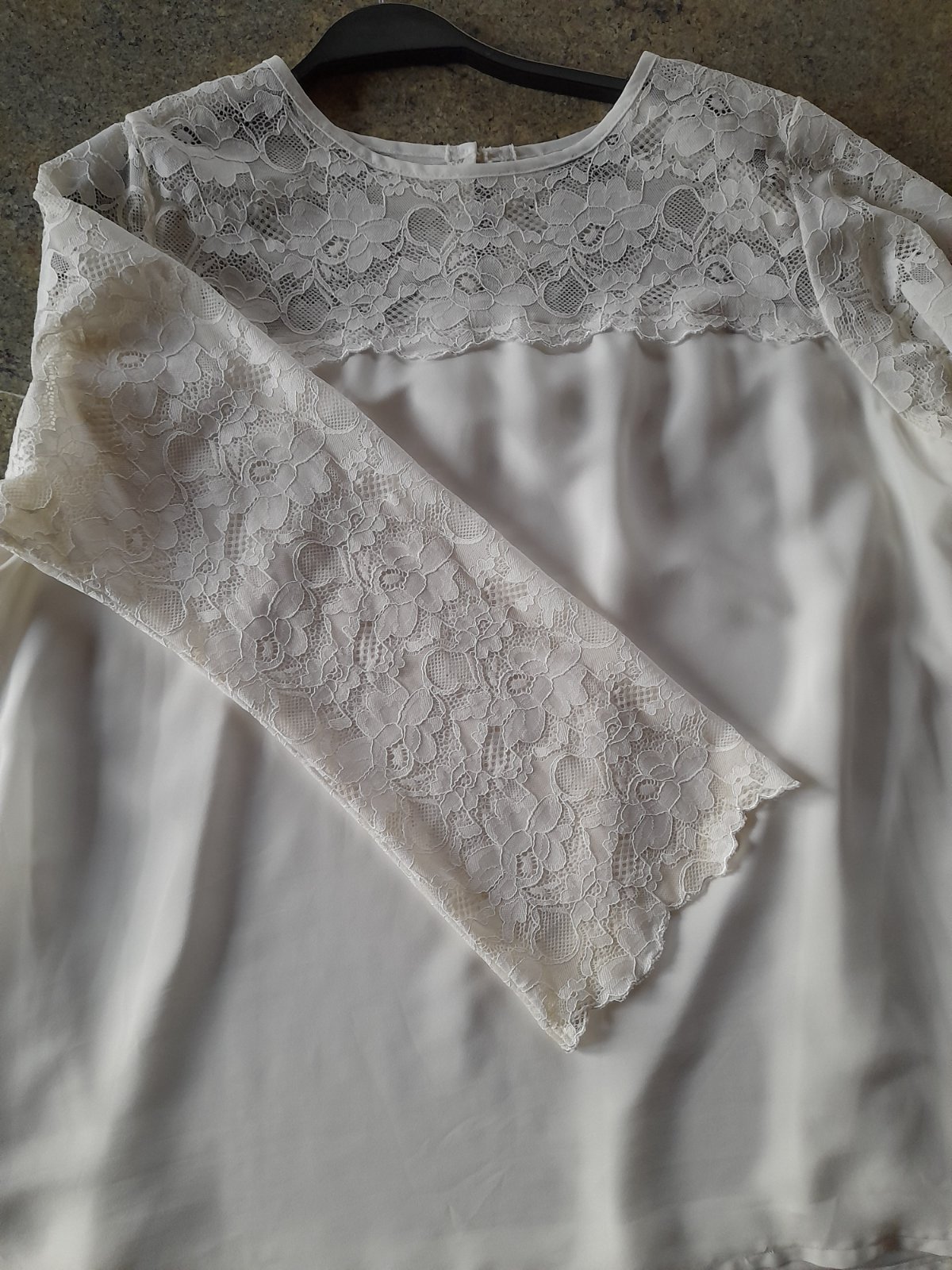 Blúzka s čipkou v Top stave, podšitá, rukávy sú rozšírené, oblečená 1x,