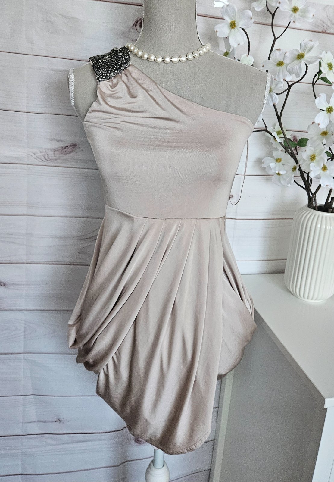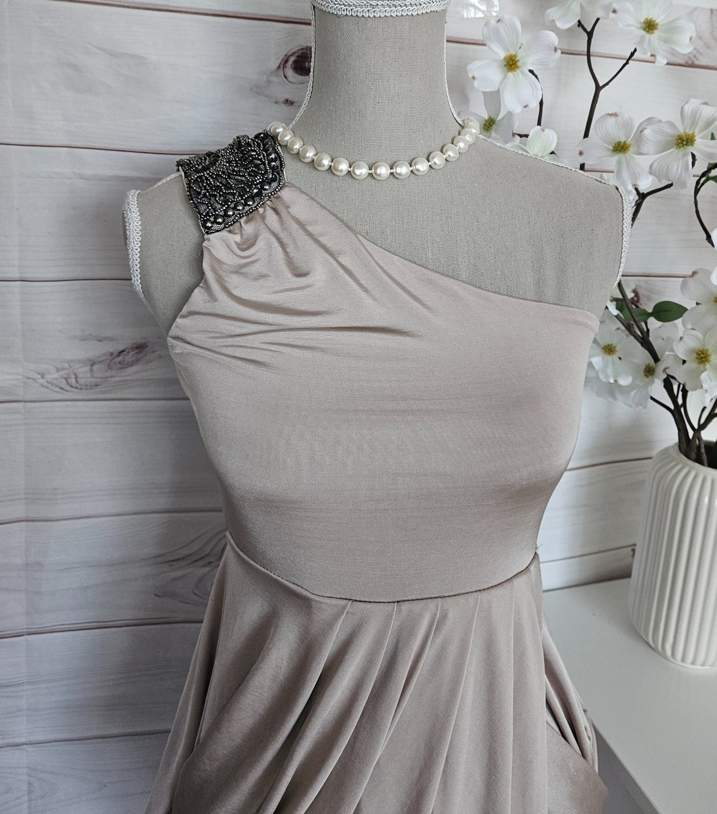 pekná blúzka na jedno rameno s aplikáciou na ňom, mierne elastická. Rozmery : prsia- 33x2 cm,dľžka -84 cm