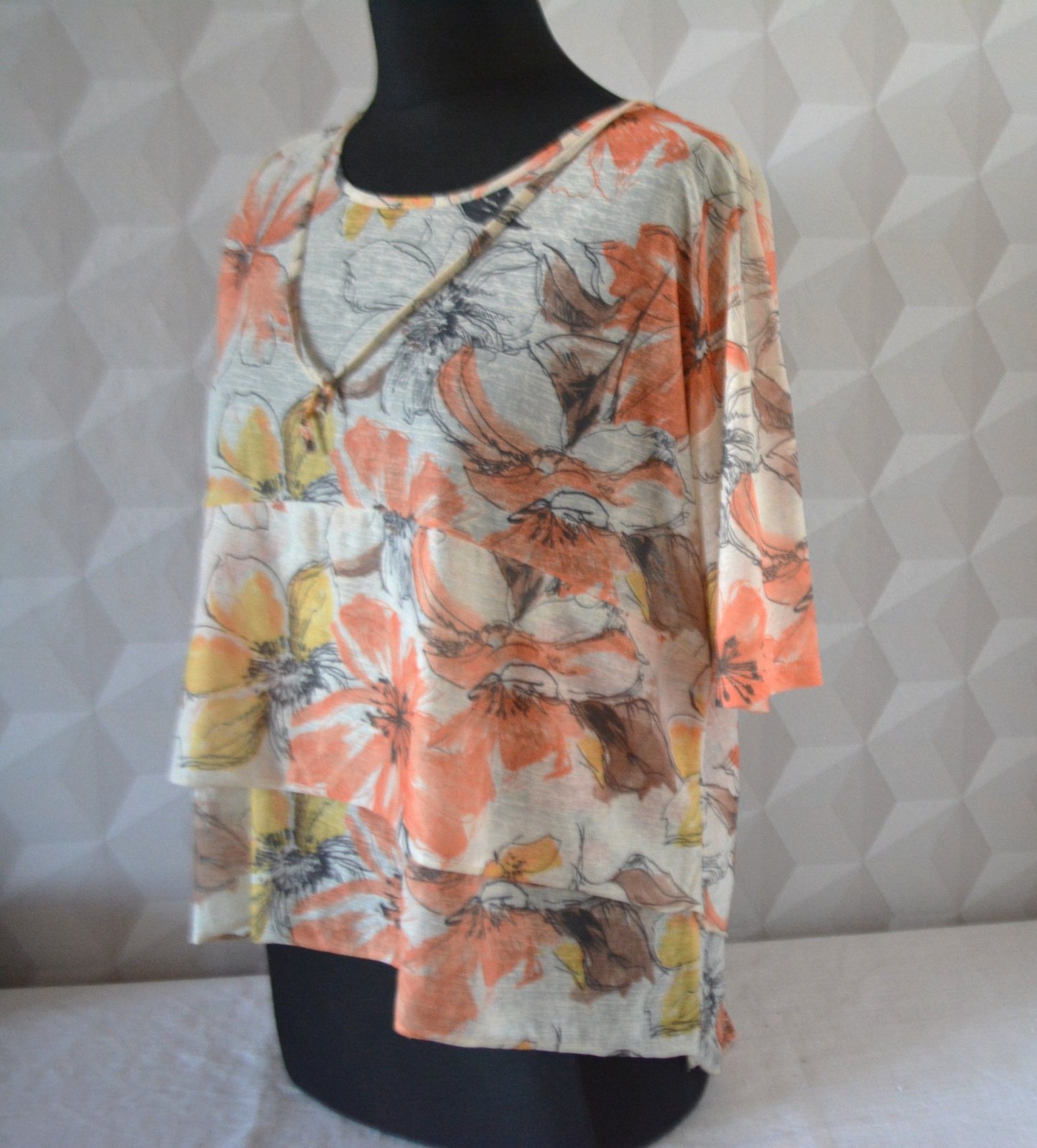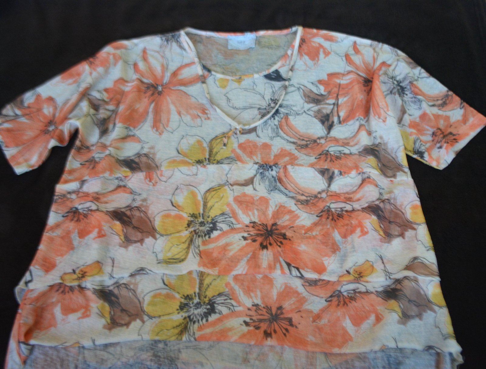 Dámska asymetrická blúzka - tričko zn. Soft b by intown, veľ. XL-XXL - rozmery: dĺžka predného dielu 58cm, zadný má 68cm. Pod pazuchami 2x57cm. Voľný oversize strih zakryje všetky faldičky na brušku :-)