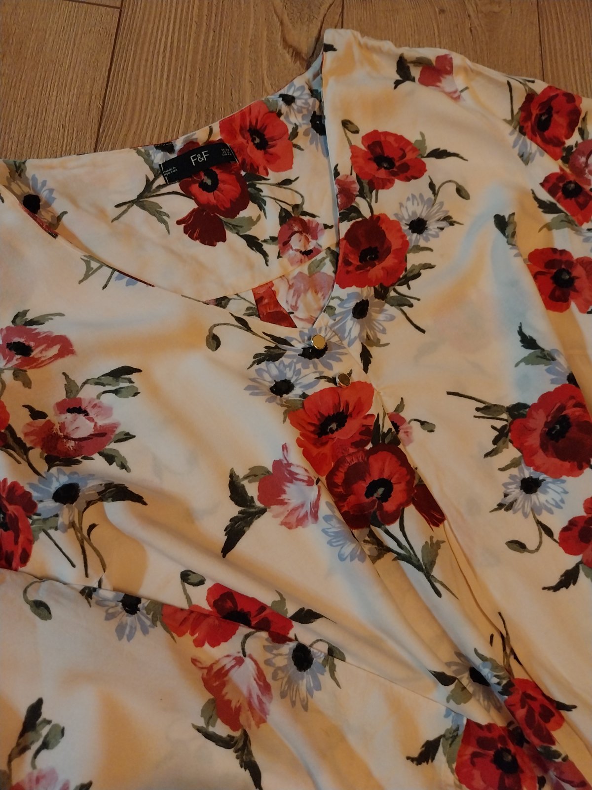 Krásny kvetinový vzor,rukavy sa daju vyhrnut na 3/4,mne však veľmi veľká