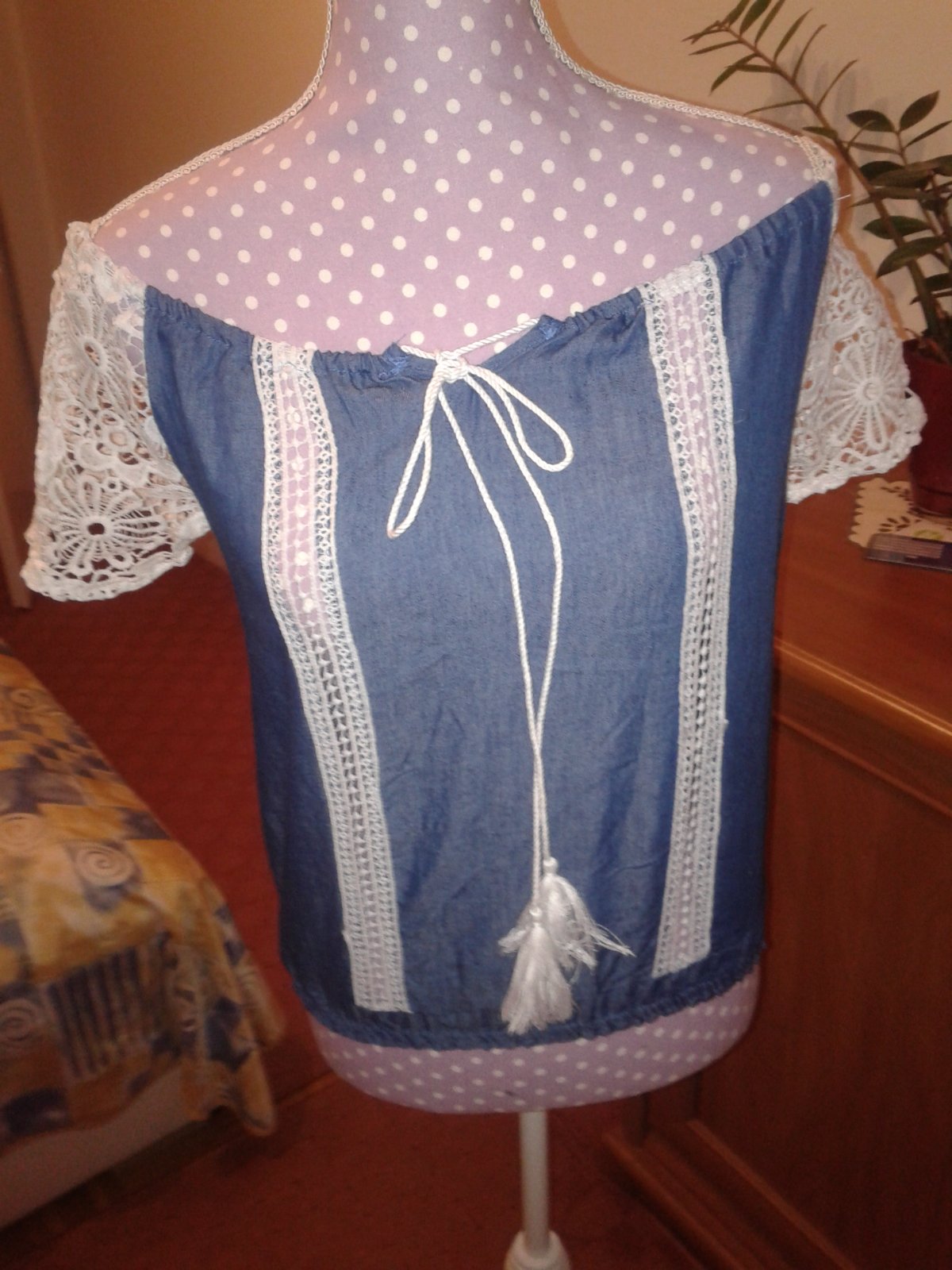 Rifľová blúzka s čipkou veľ. S