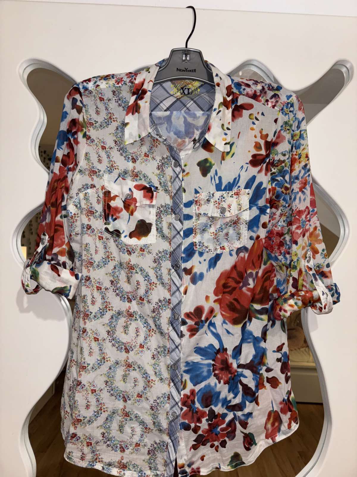 Výborný stav, ľahká košeľa s roll-up rukávmi, veľkosť XL, skôr M/L, šírka pod pazuchami 53 cm, dĺžka cca 70 cm