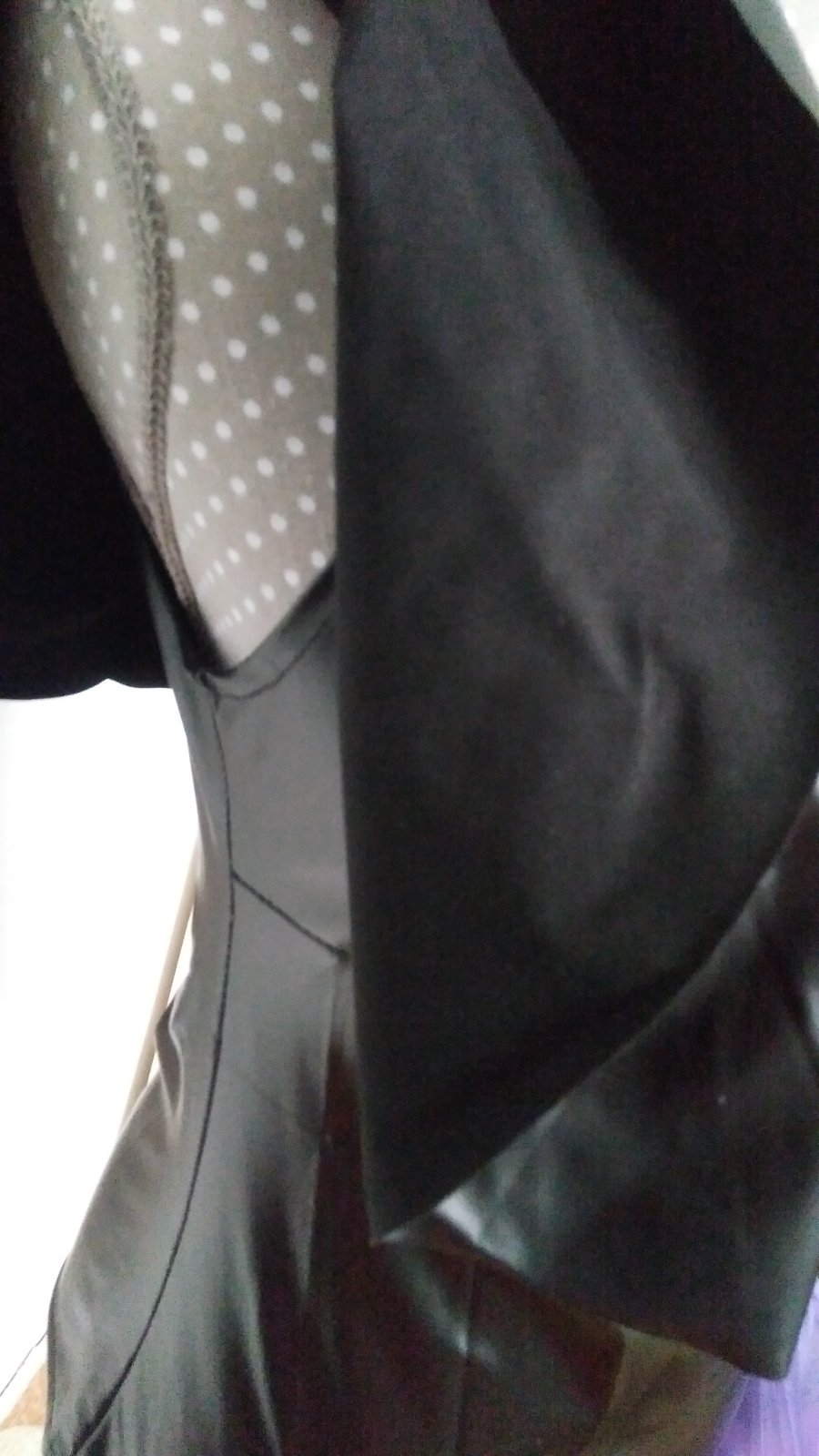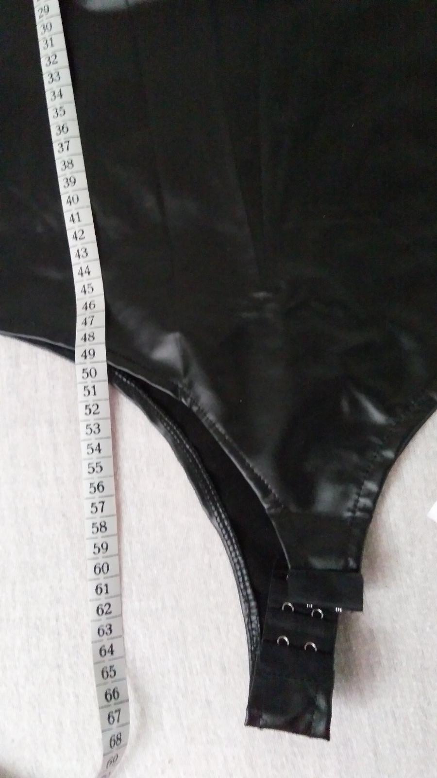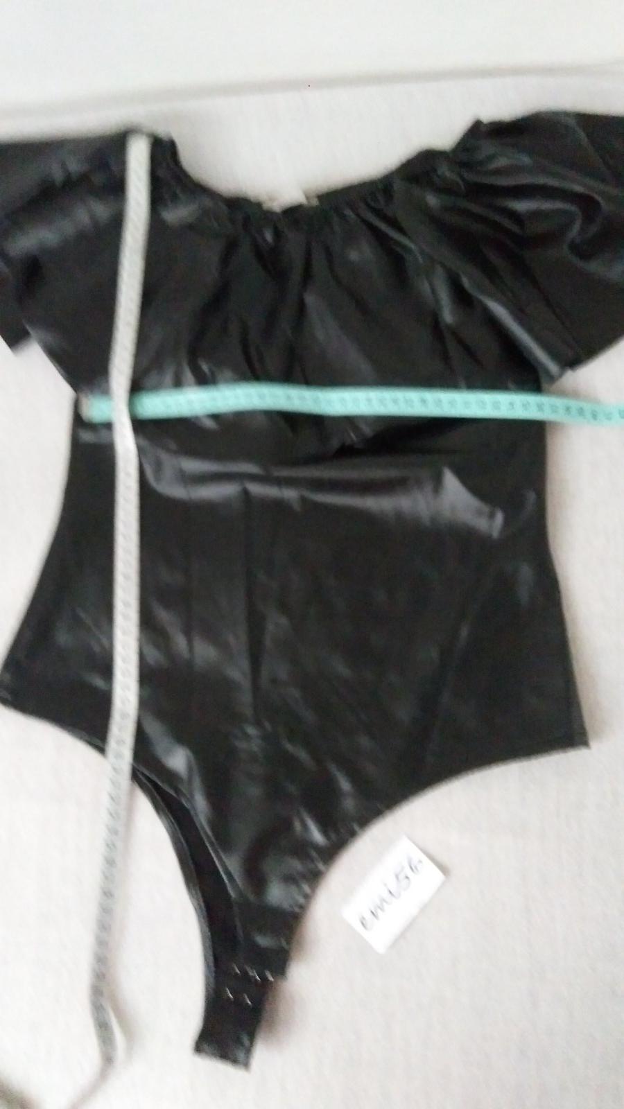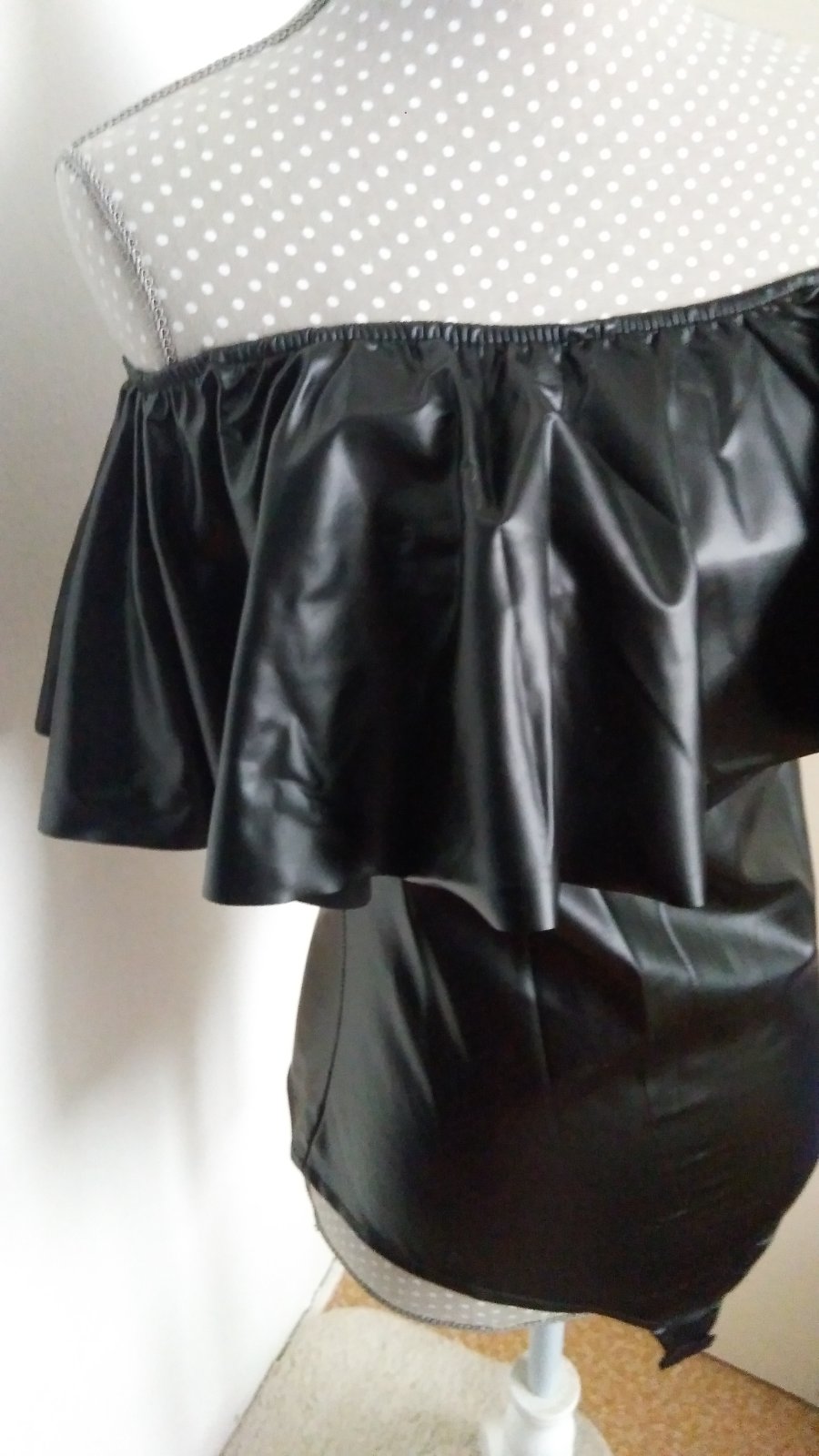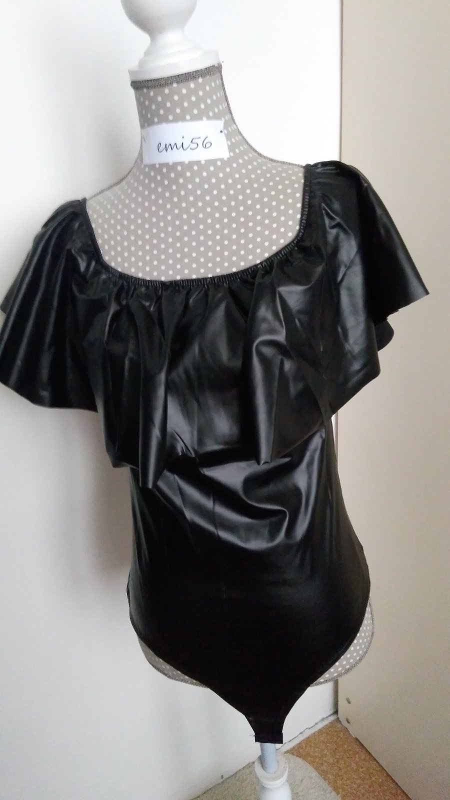 Elastické body s efektom kože v čiernej farbe. Volán okolo výstrihu.
