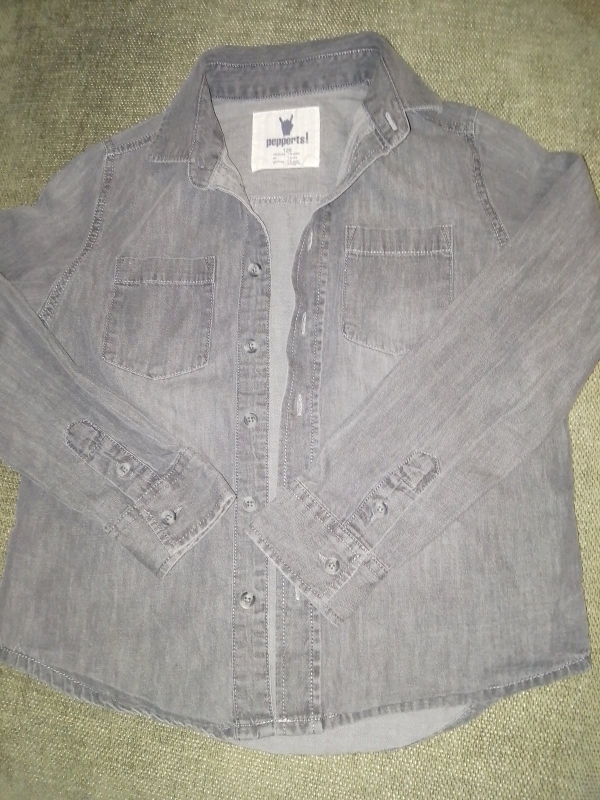 Košeľa v dobrom stave, bez poškodení, imitácia rifľoviny, veľ. 128, cena 2,50€ + pošt.