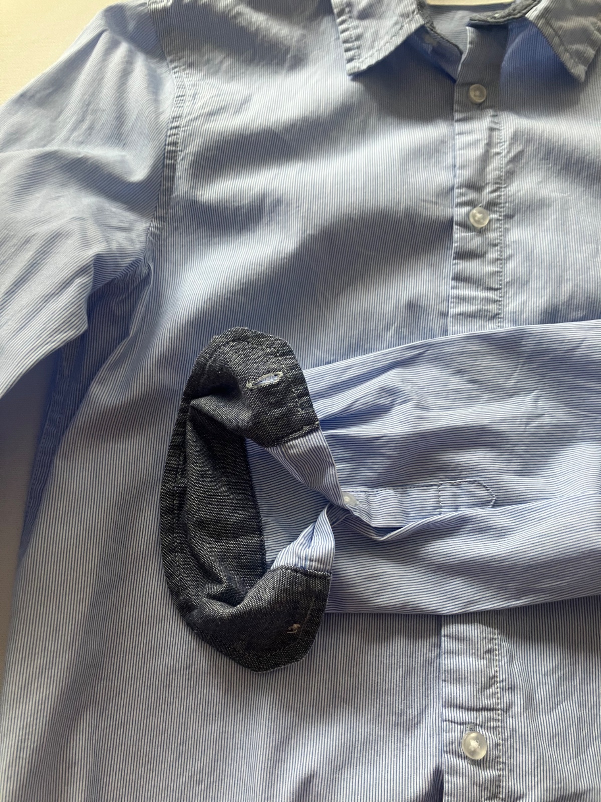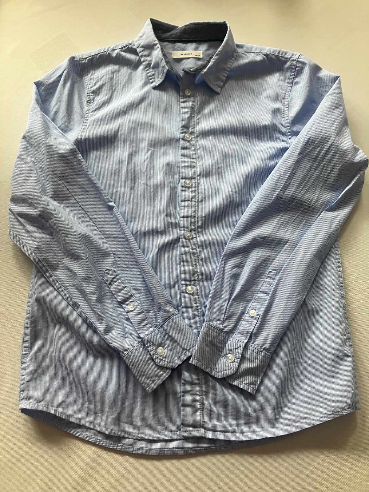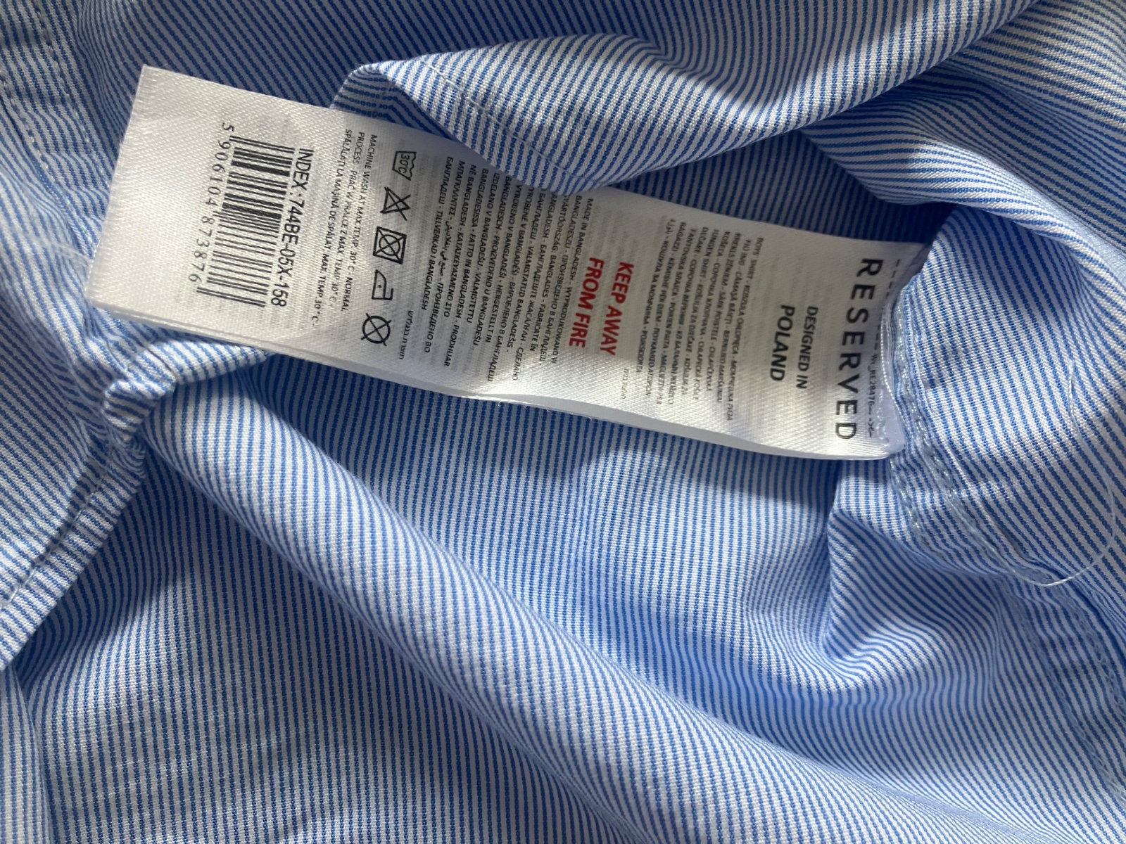 Veľmi pekný nosený stav. Farba svetlomodrá s tmavšo modrým prúžkom. Foto skresľuje.