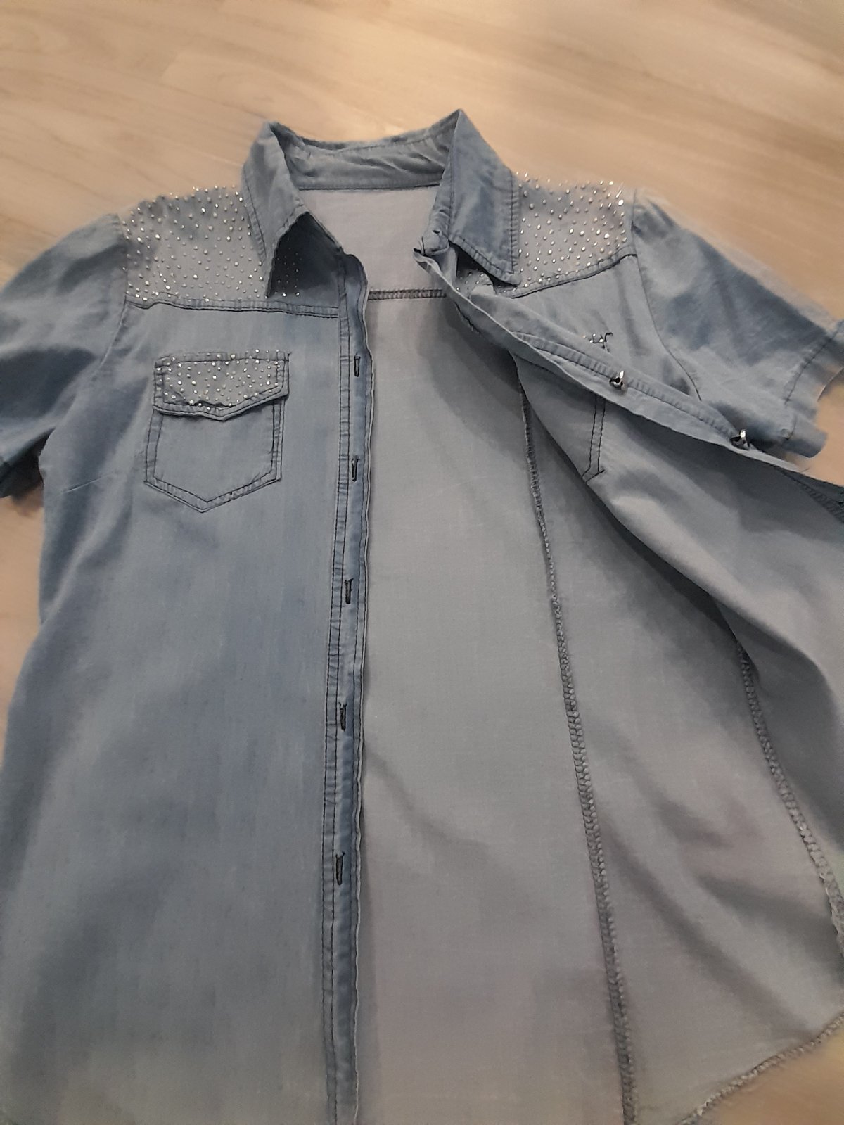 Košeľa s peknými detailami. V top stave. Mäkká rifľovina. Rozmery na fotkách. M. Odporúčam.