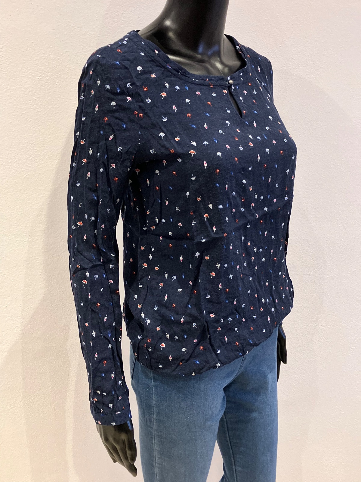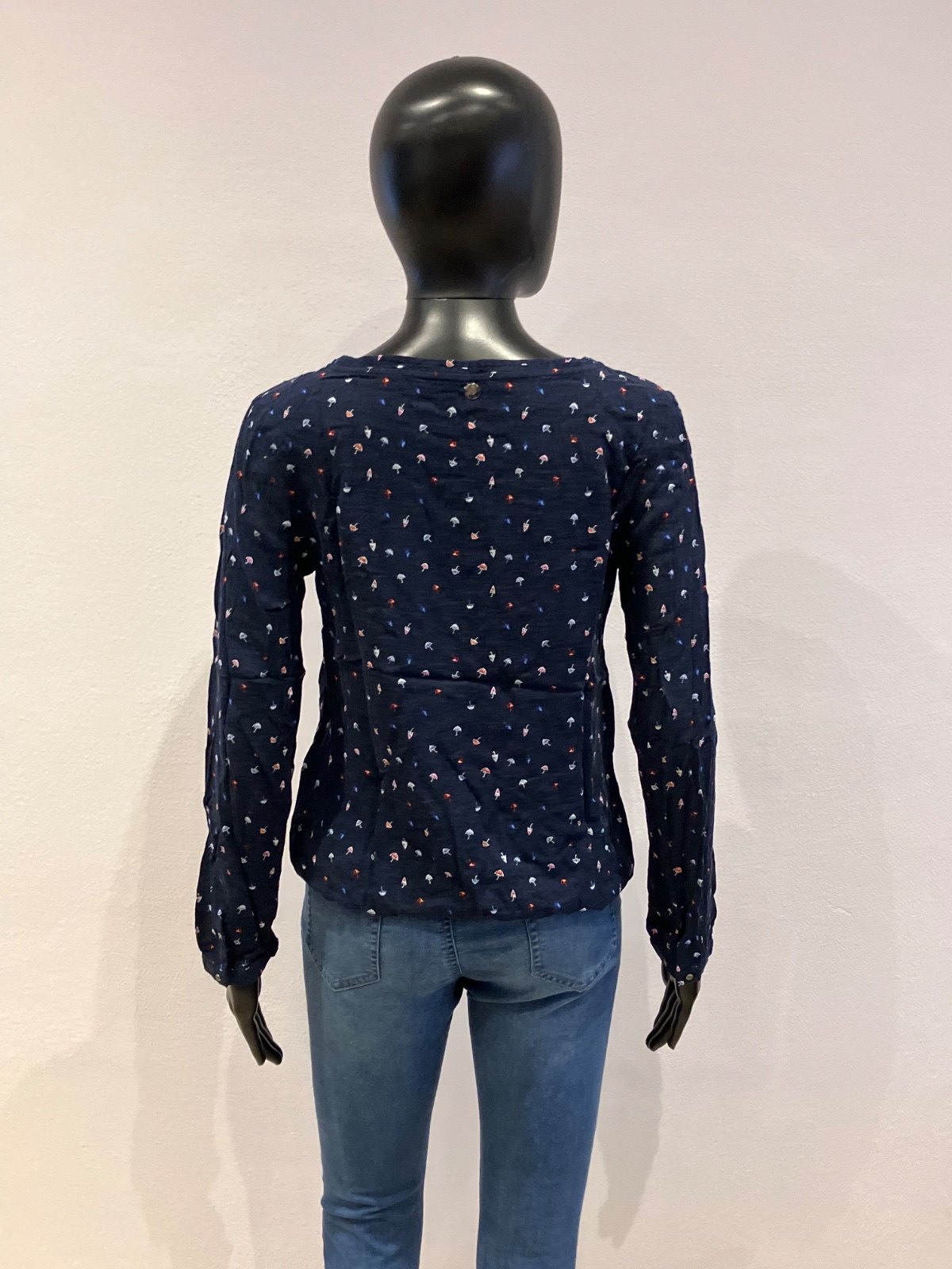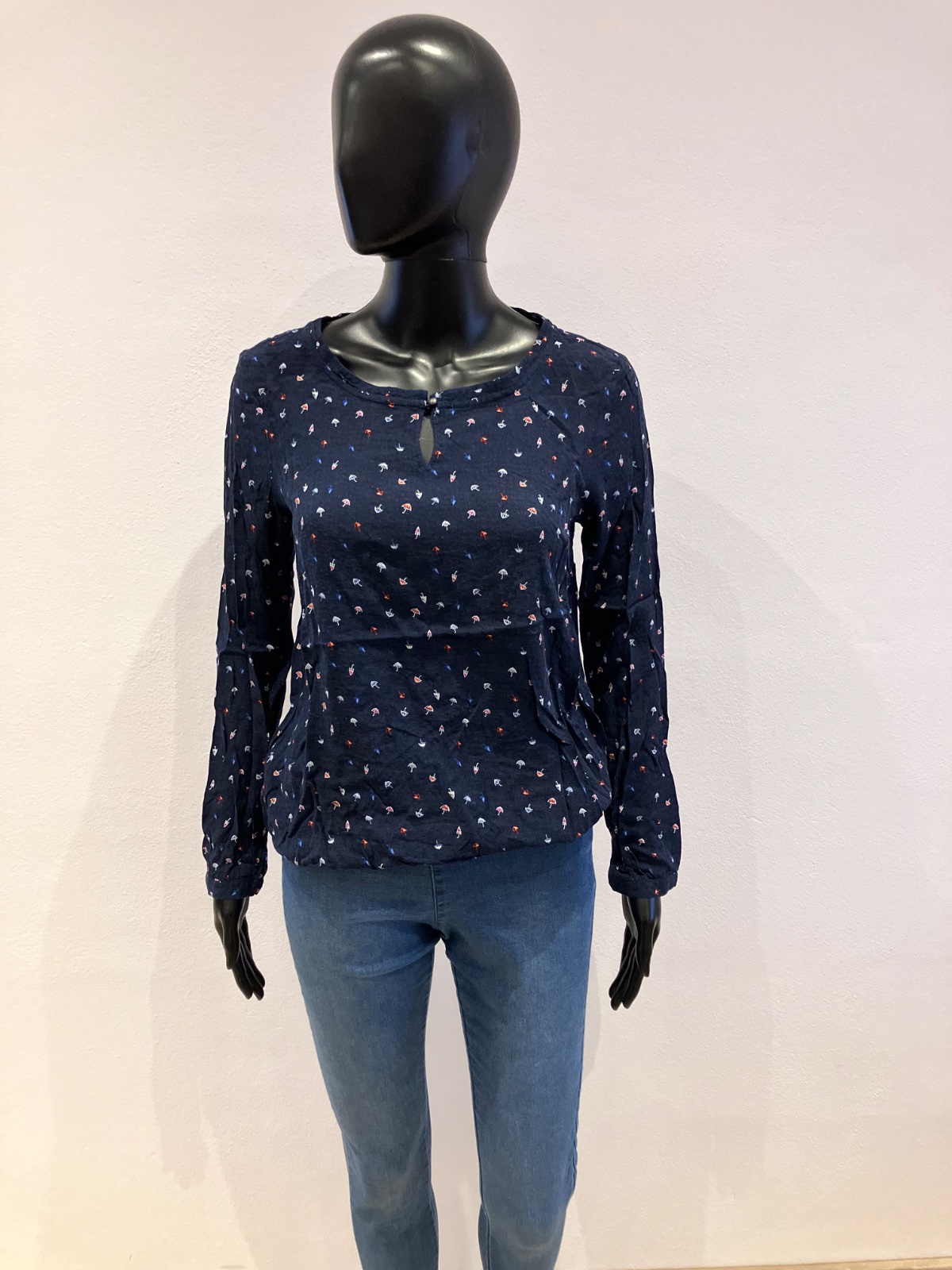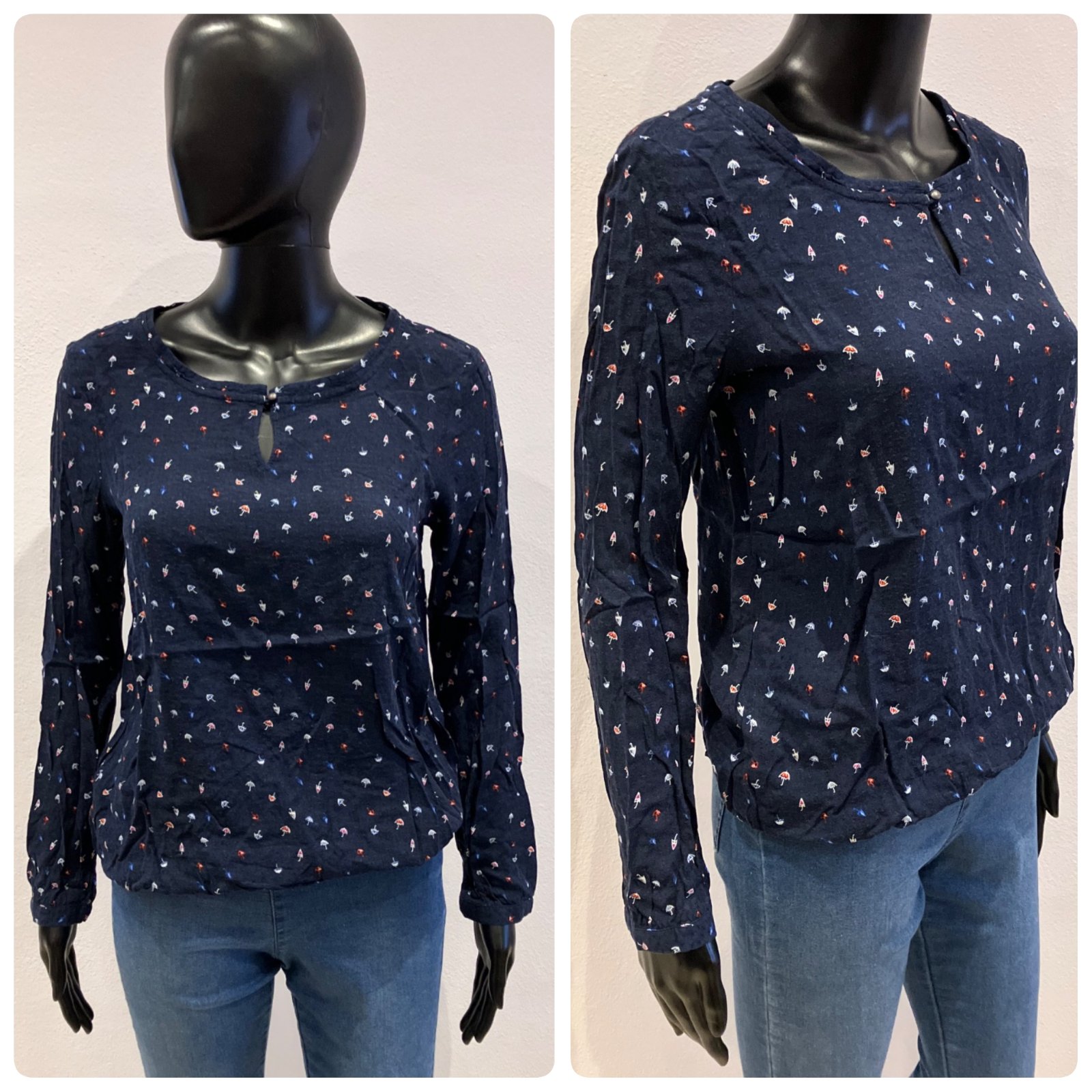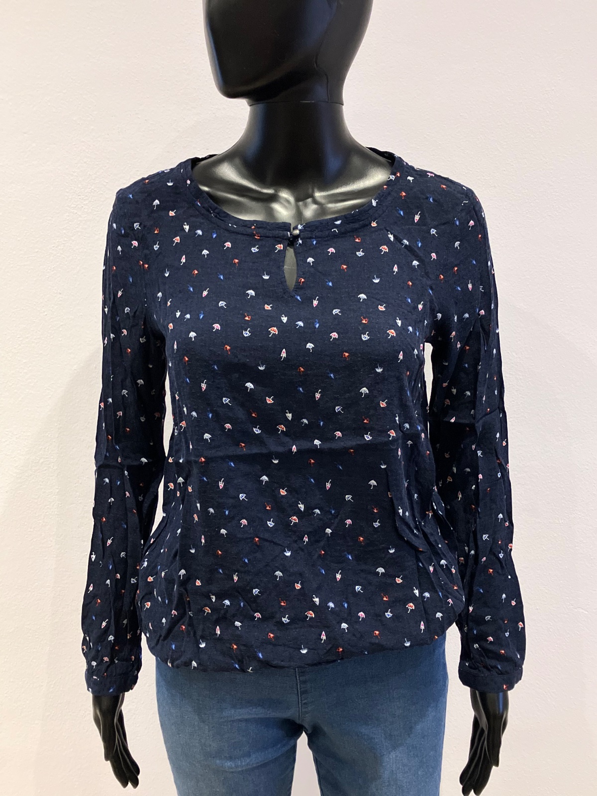 Dámska blúzka s dlhým rukávom, vzorovaná, elastická, zapínanie na jeden gombík, materiál 100%viskóza.