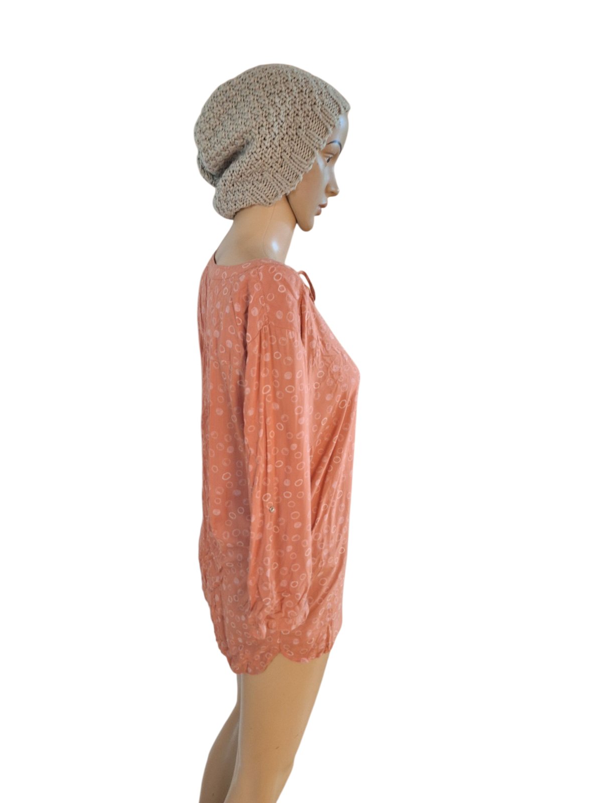 Dámska blúzka so šnúrkou značky Cecil. Dĺžka je 65cm,obvod hrudníka je 88cm a obvod pása je 86cm. Dĺžka rukáva je o krku 55cm. kód 1487