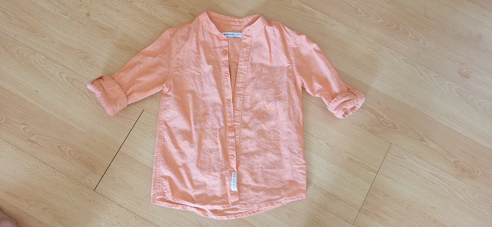 Nadherna košieľka, ako nova. Rukavy sa daju dat ako dlhe alebo skratit. Vyzera uplne uzasne. Farbu sa mi nepodarilo zachytit ako vyzera v reale, ale je taka oranzovo lososova