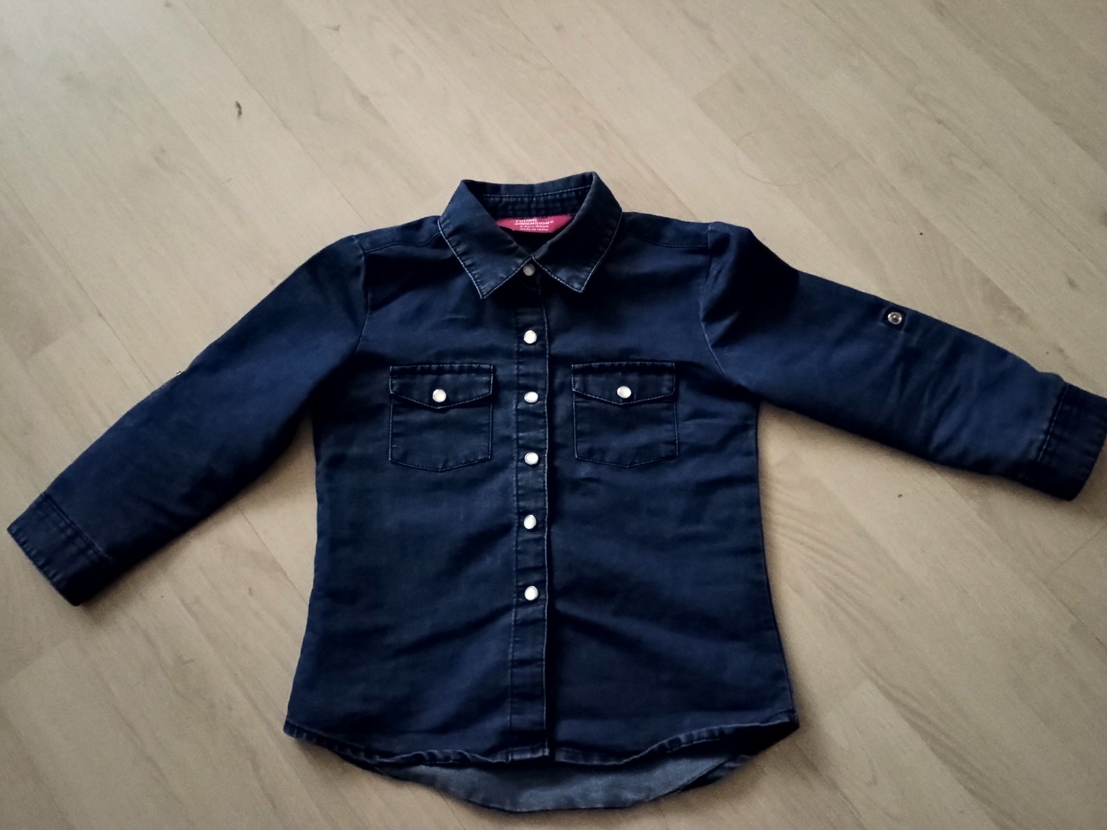 Predám riflovú košelu, veľkosť 104 rukávy sa dajú vypnúť aj hore,je v peknom stave
