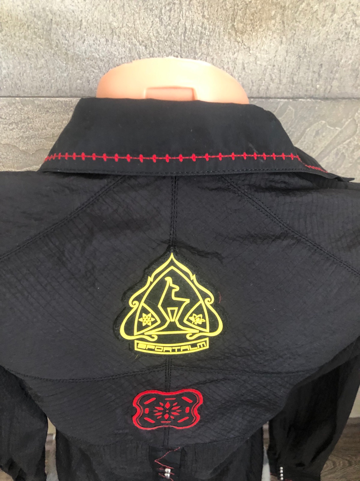 Zaraďila by som do veľkosti 36. Dĺžka cez stred chrbta 57 cm, šírka pod pazuchami 47 cm. Čierna farba v kombinácii so striebornou niťou. Pekný nosený stav.