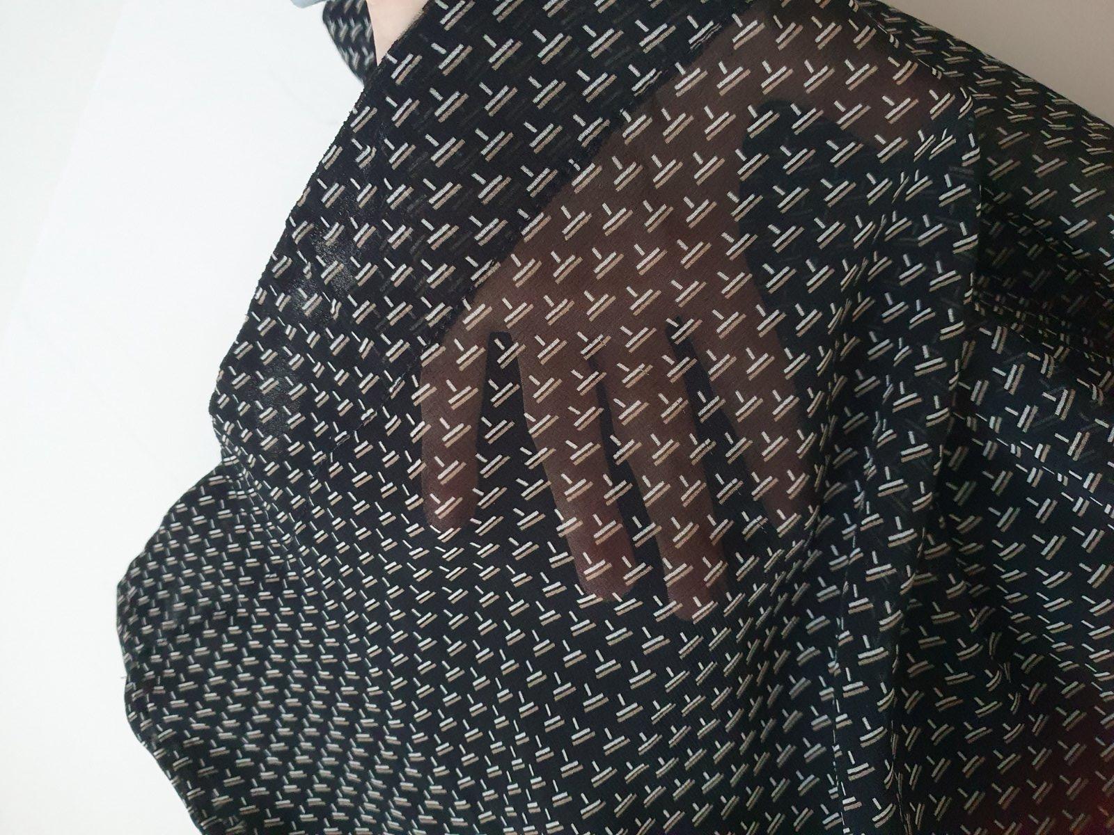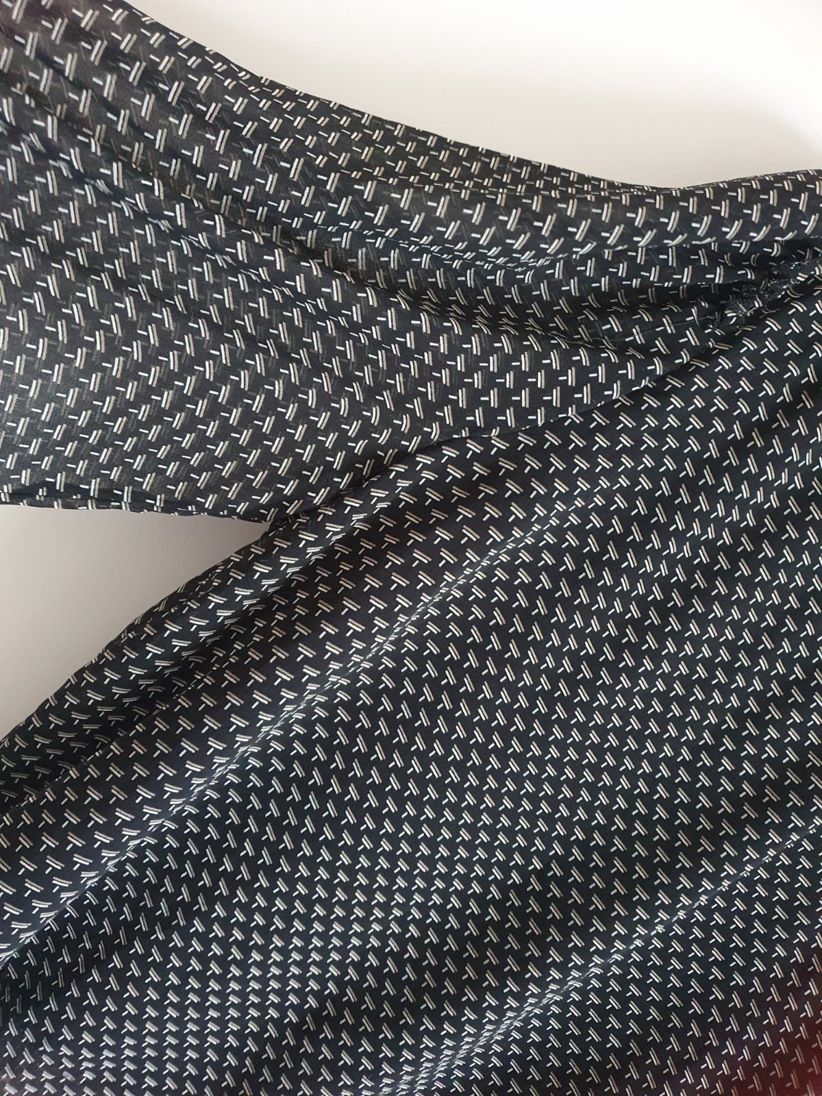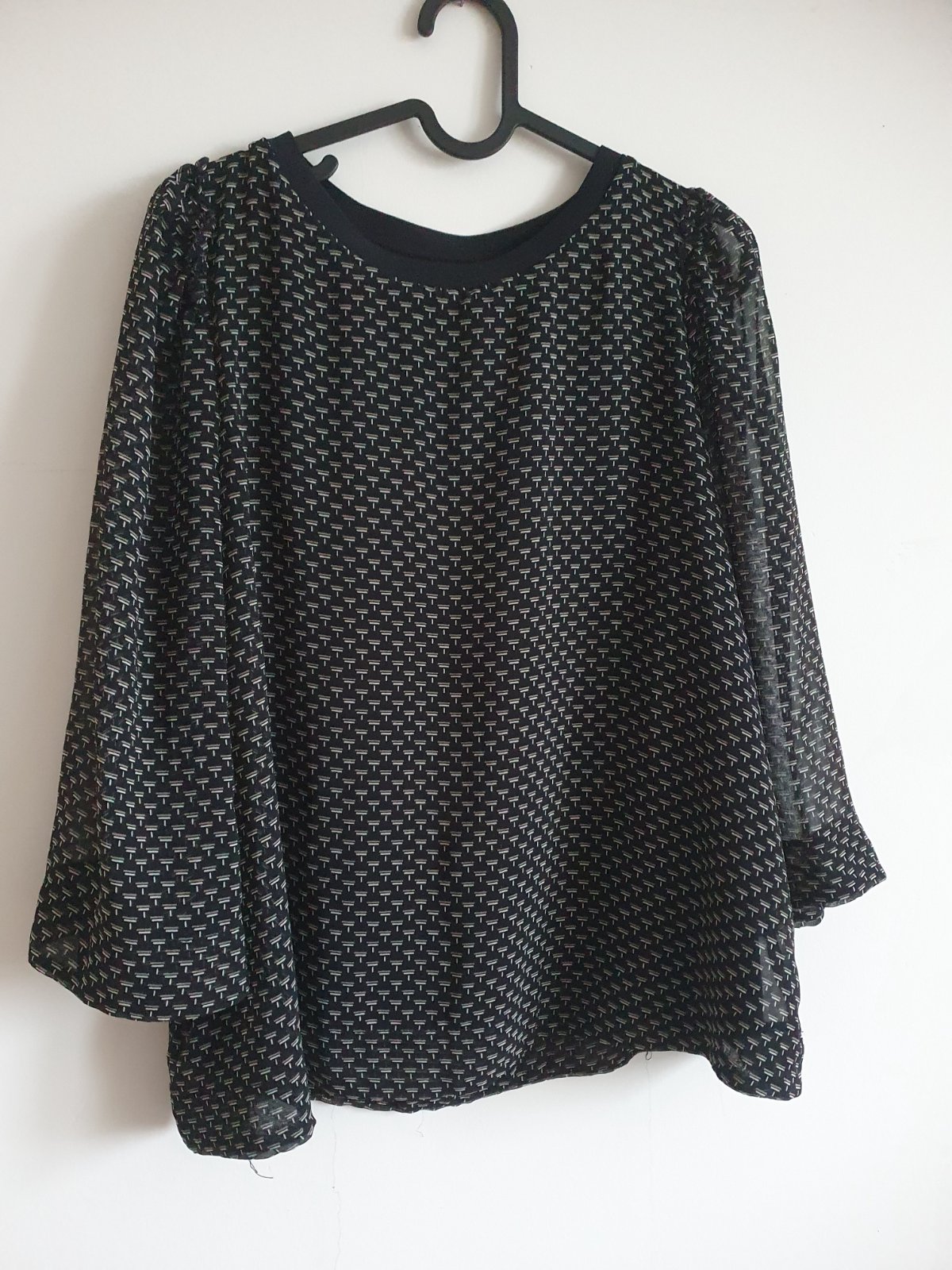 1x použité, materiál je priehľadný, padavý, okrem rukávov je podšitý tričkovinou. Veľkosť písaná XL, skôr je to M, pozri rozmery na foto. Blúzka je voľná, vzdušná, príjemná na nosenie.