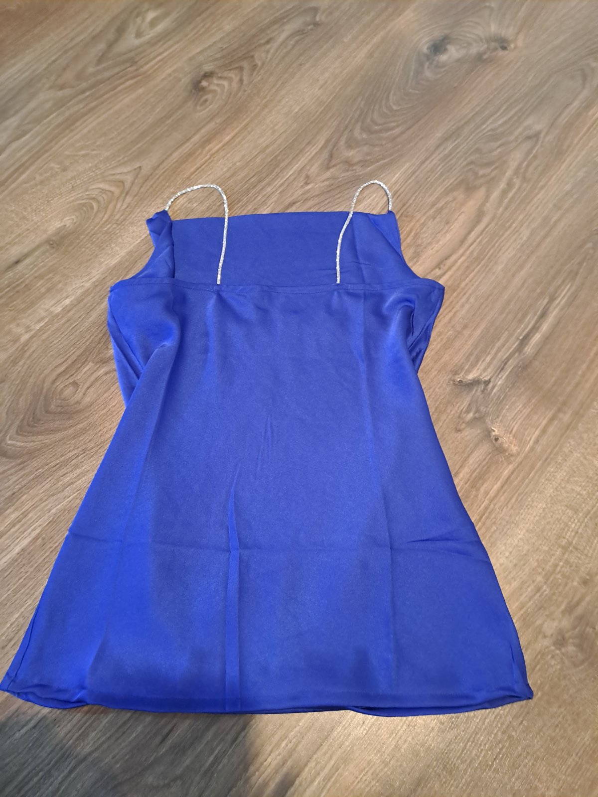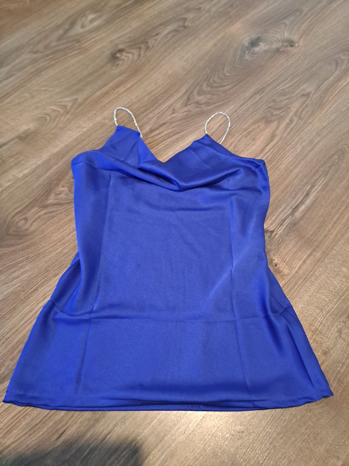 Tmavomodra, skoro az cierna farba, bezchybny stav. Bluzka je priesvitna, treba pod nu obliect este tielko. Hore sa da zapnut patentkou az ku krku. 100% polyester. Dlzka: 68cm Sirka: 49cm