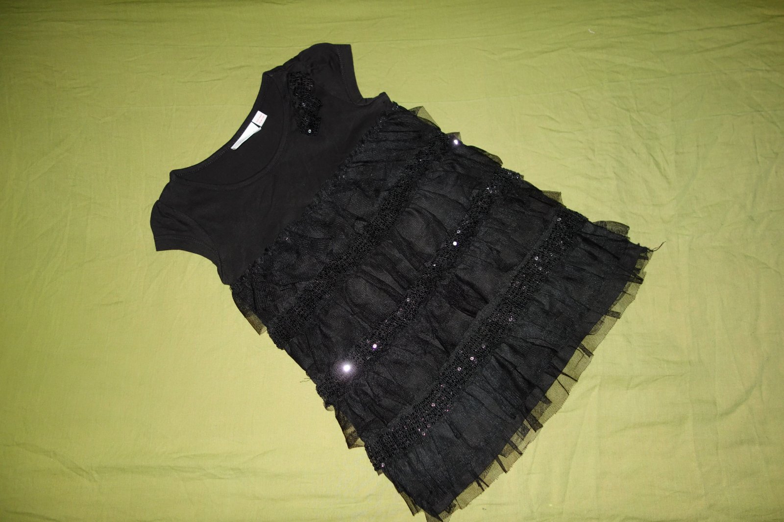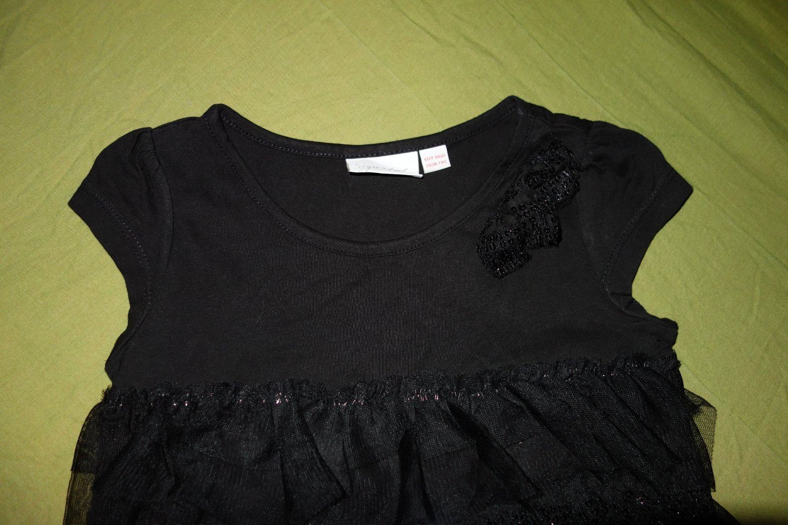 Krasna tuncika s tylovymi volanikmi vo vybornom stave. Je syto-cierna. Vrchna cast tunicky je upletova (trickovina).