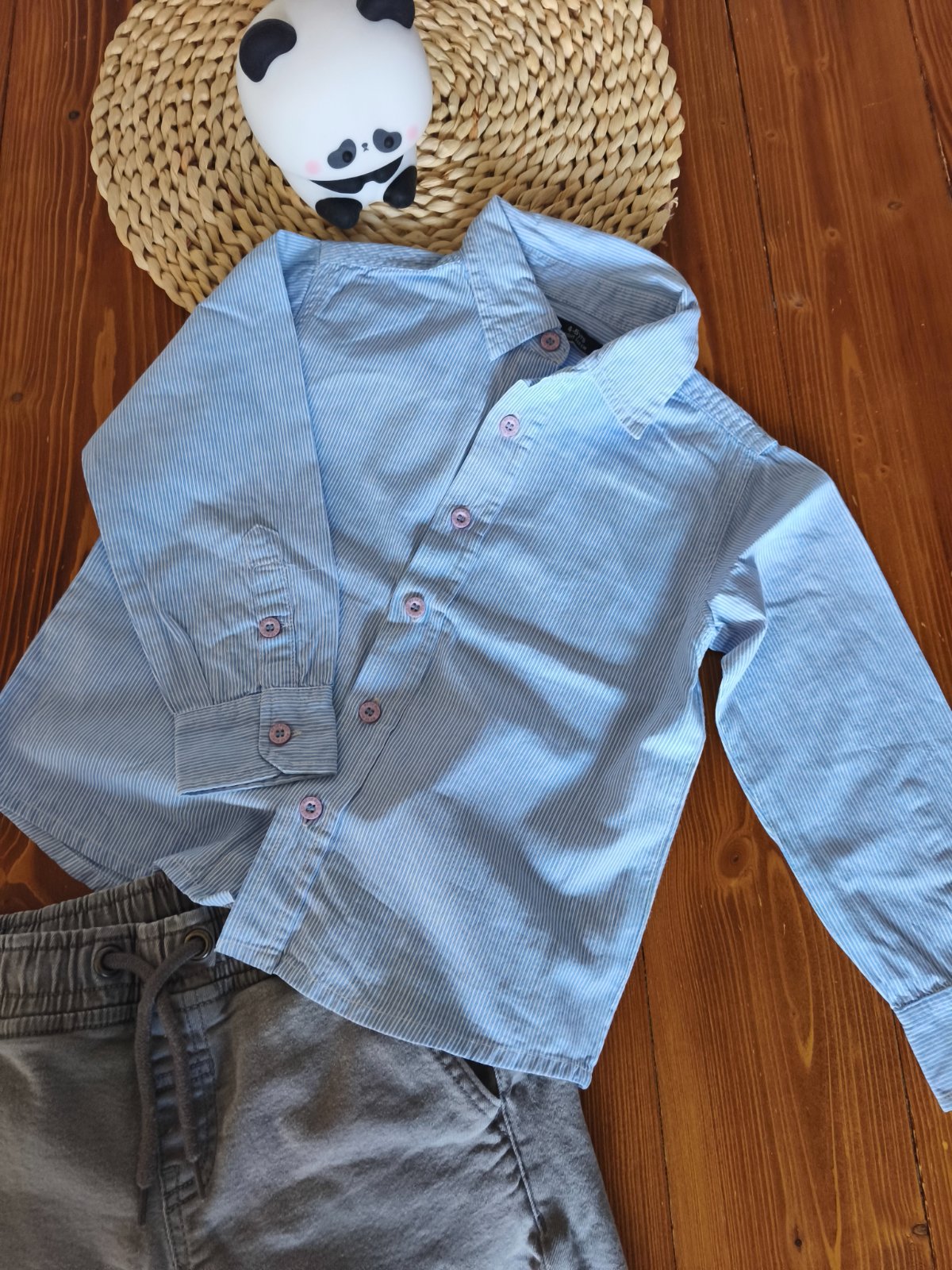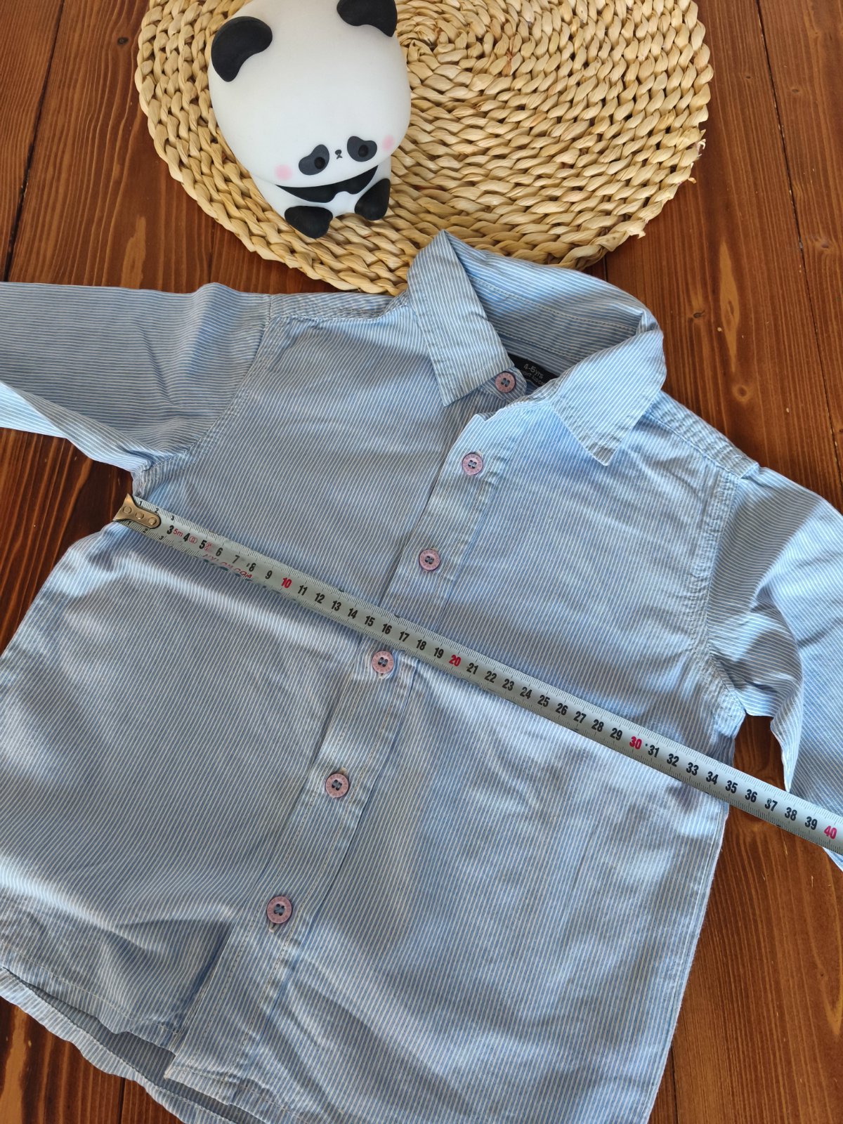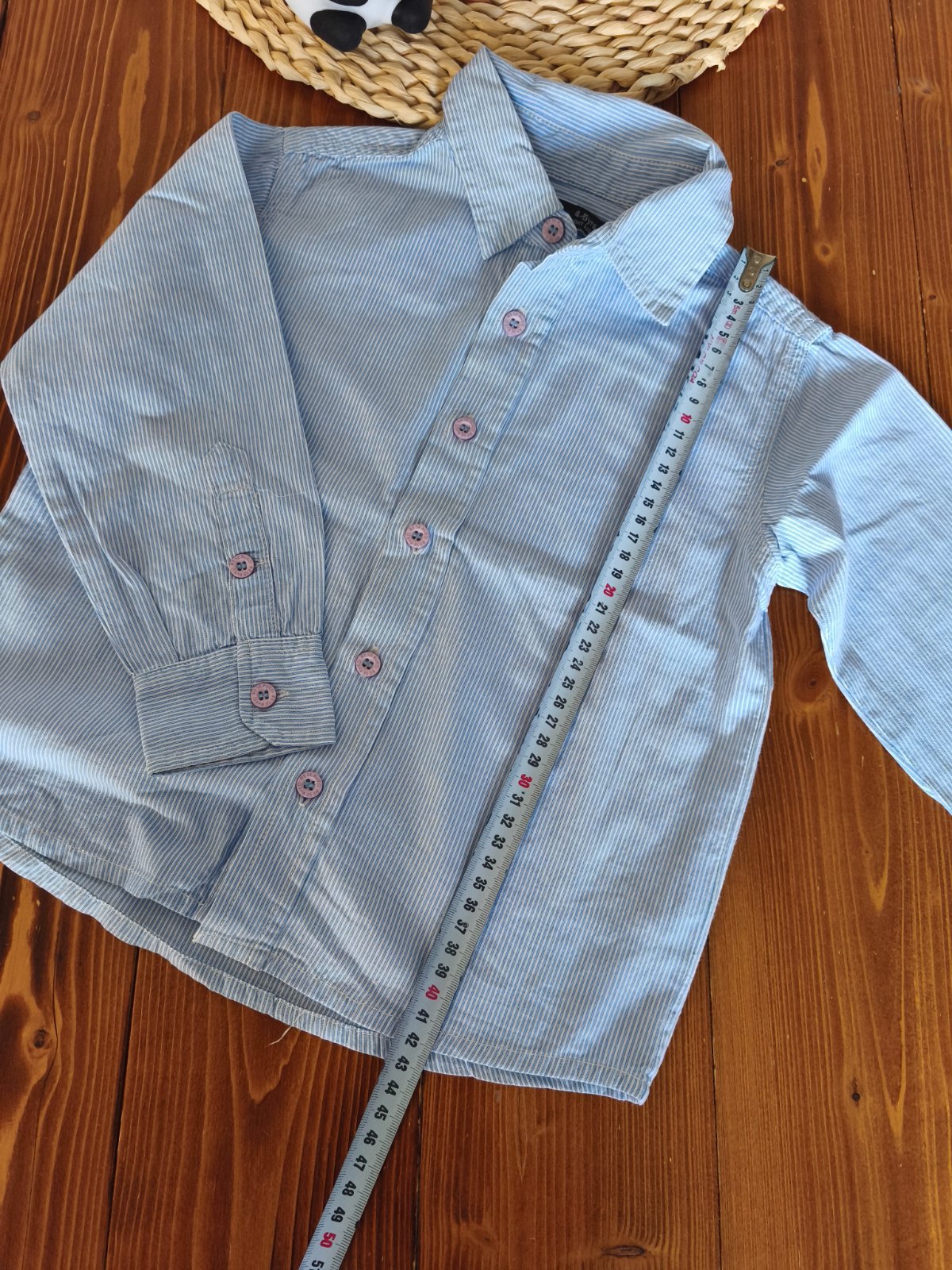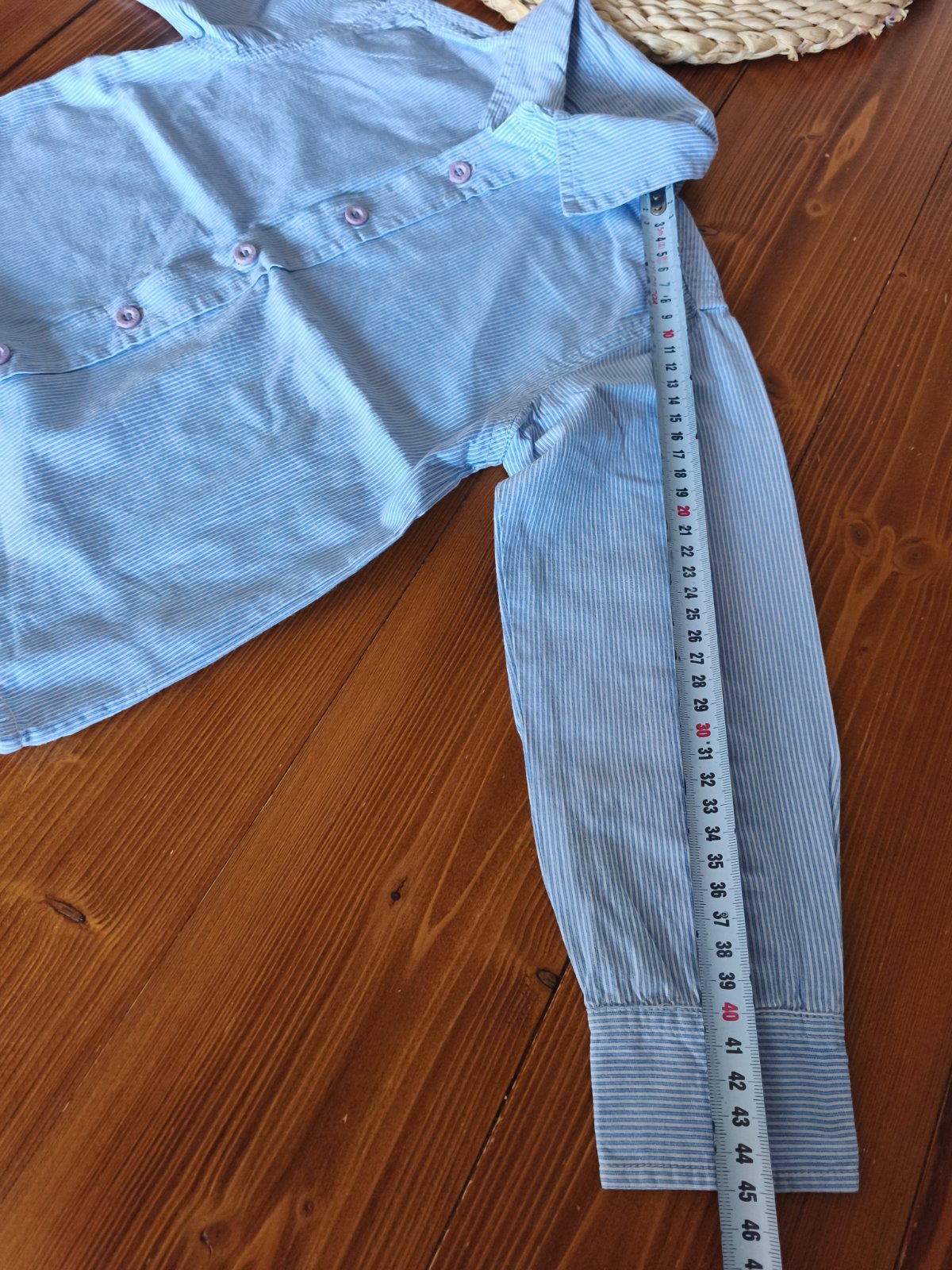 Pásikavá košeľa v top stave, malo nosená mali sme ich viacej. Veľkosť je uvedená 110, no je nositeľná od 104. Rozmery uvedené na foto.