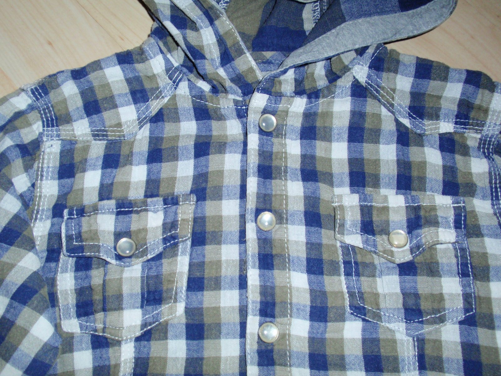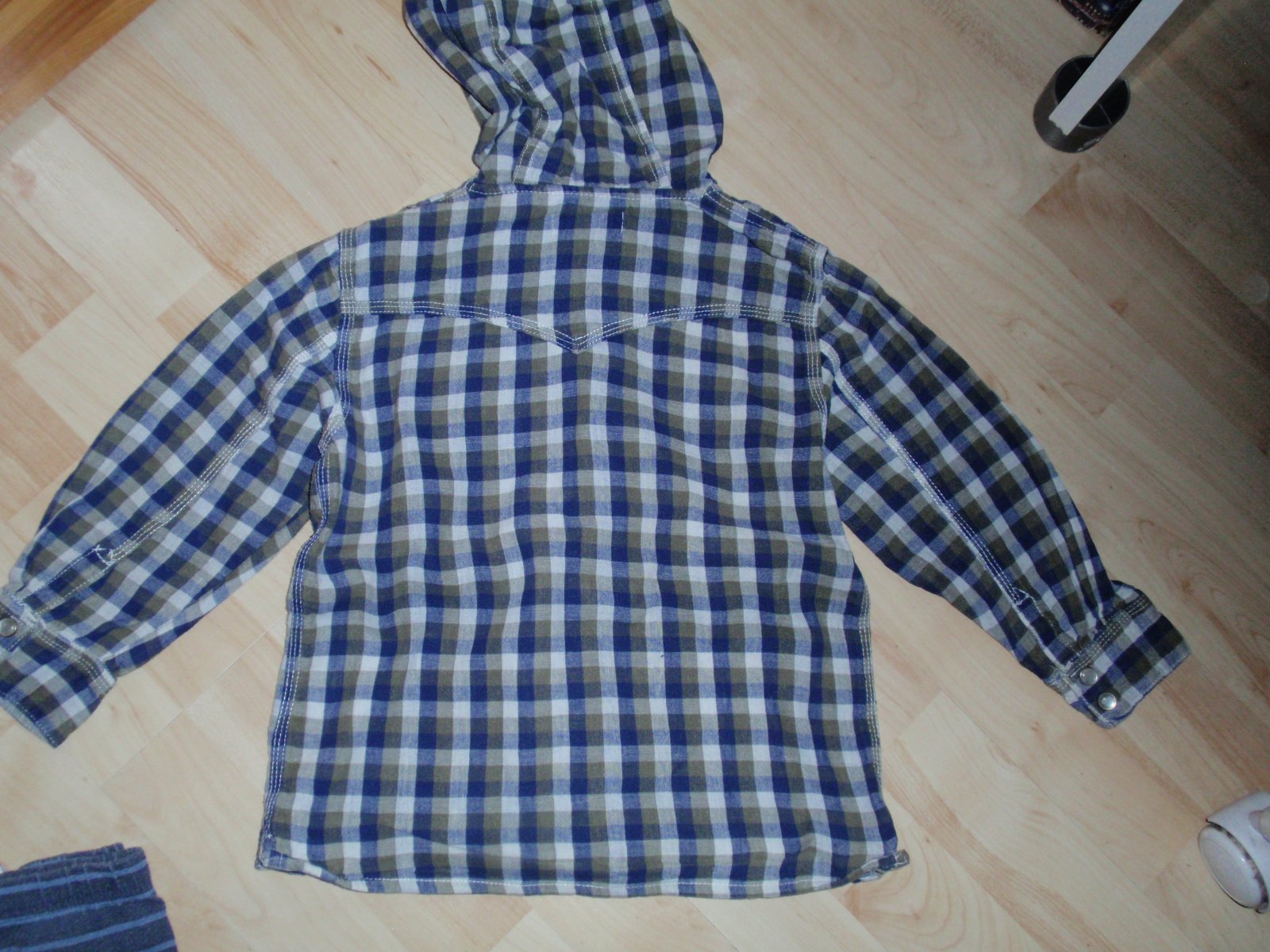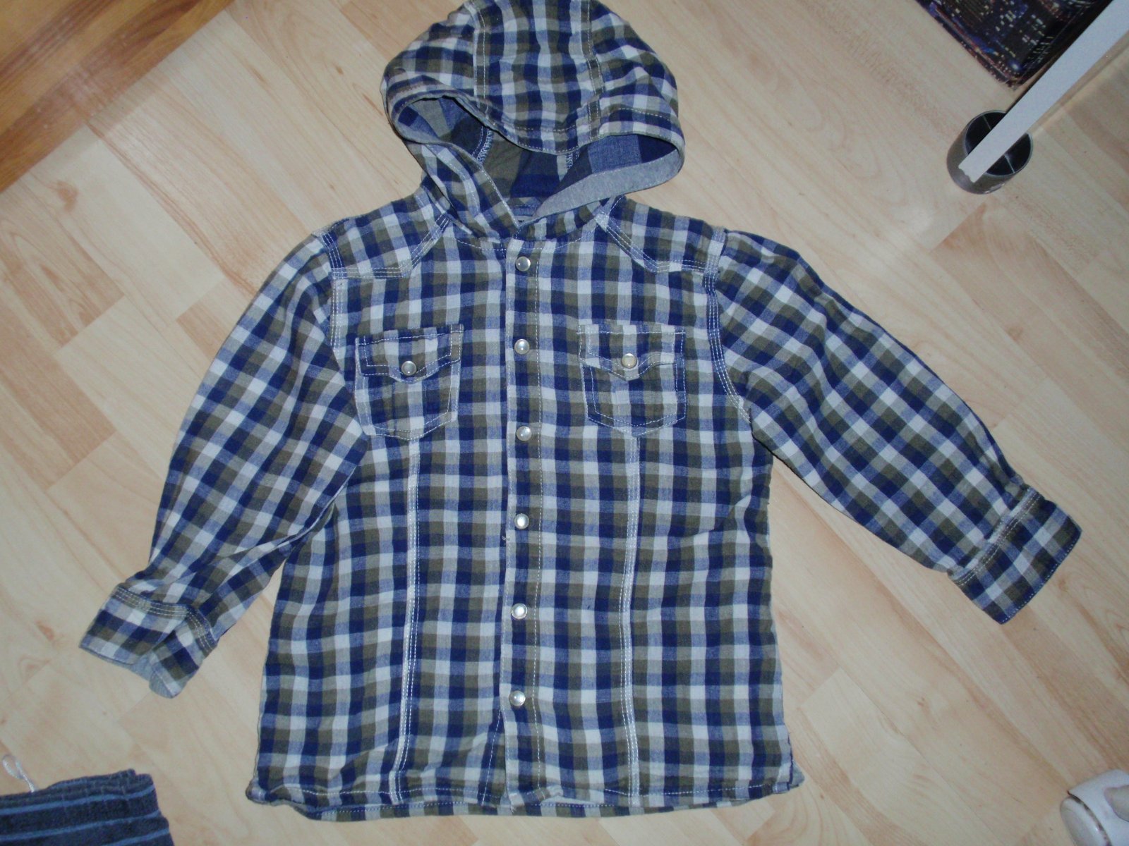 Kockovaná košeľa s kapucňou v dobrom stave bez poškodenia, veľkosť 104, zapínanie na patenty, 100% bavlna
