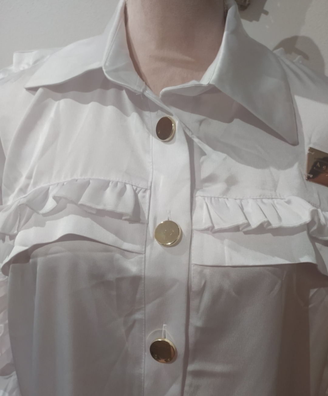 Štýlová košeľa,voľný strih,predný diel o niečo kratší,zapínanie na veľké zlaté gombíky.Vel Uni vhodné pre veľ M-Xl