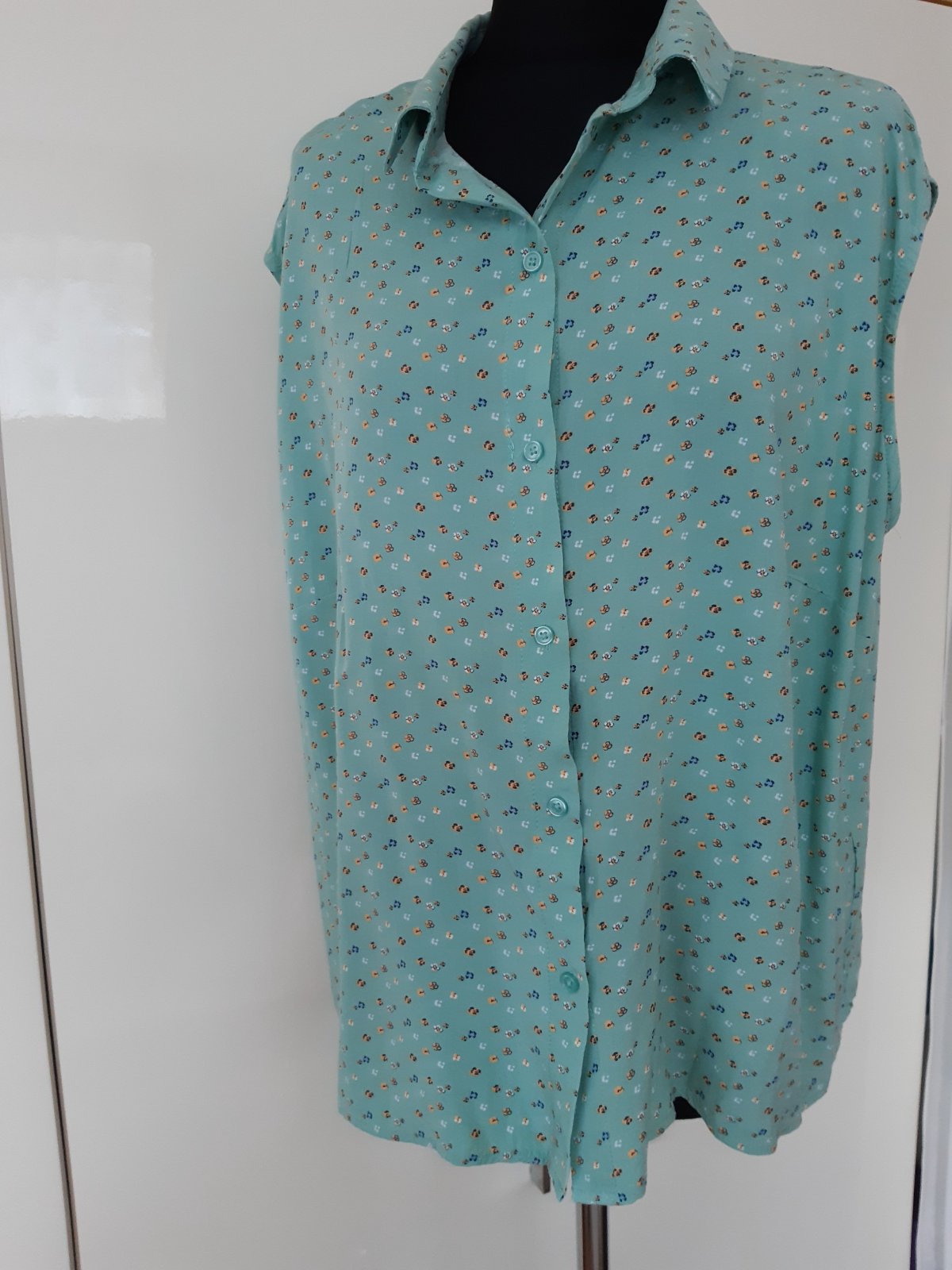 Blúzka na horúce leto. Dl. 67 cm, šírka cez prsia 64x2 cm. Materiál 100% viskóza. Blúzka je vo výbornom stave, bez poškodenia.