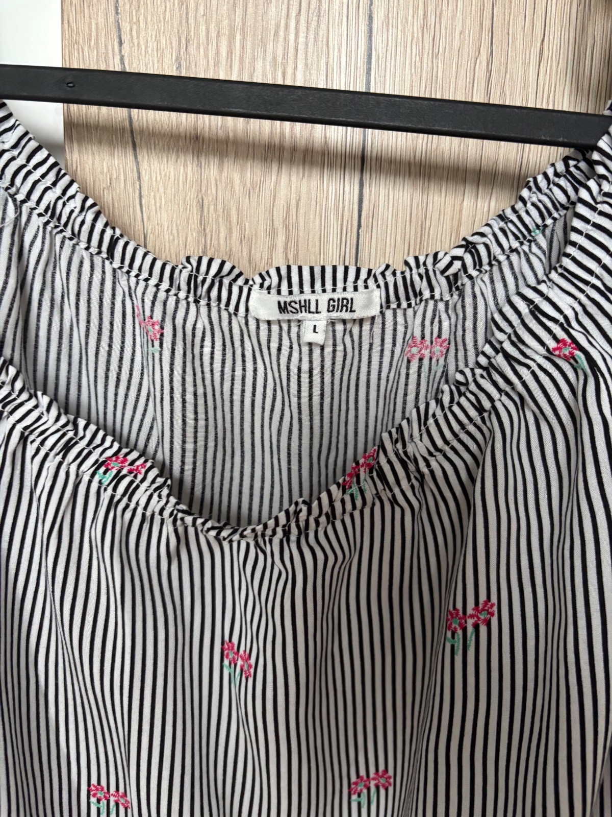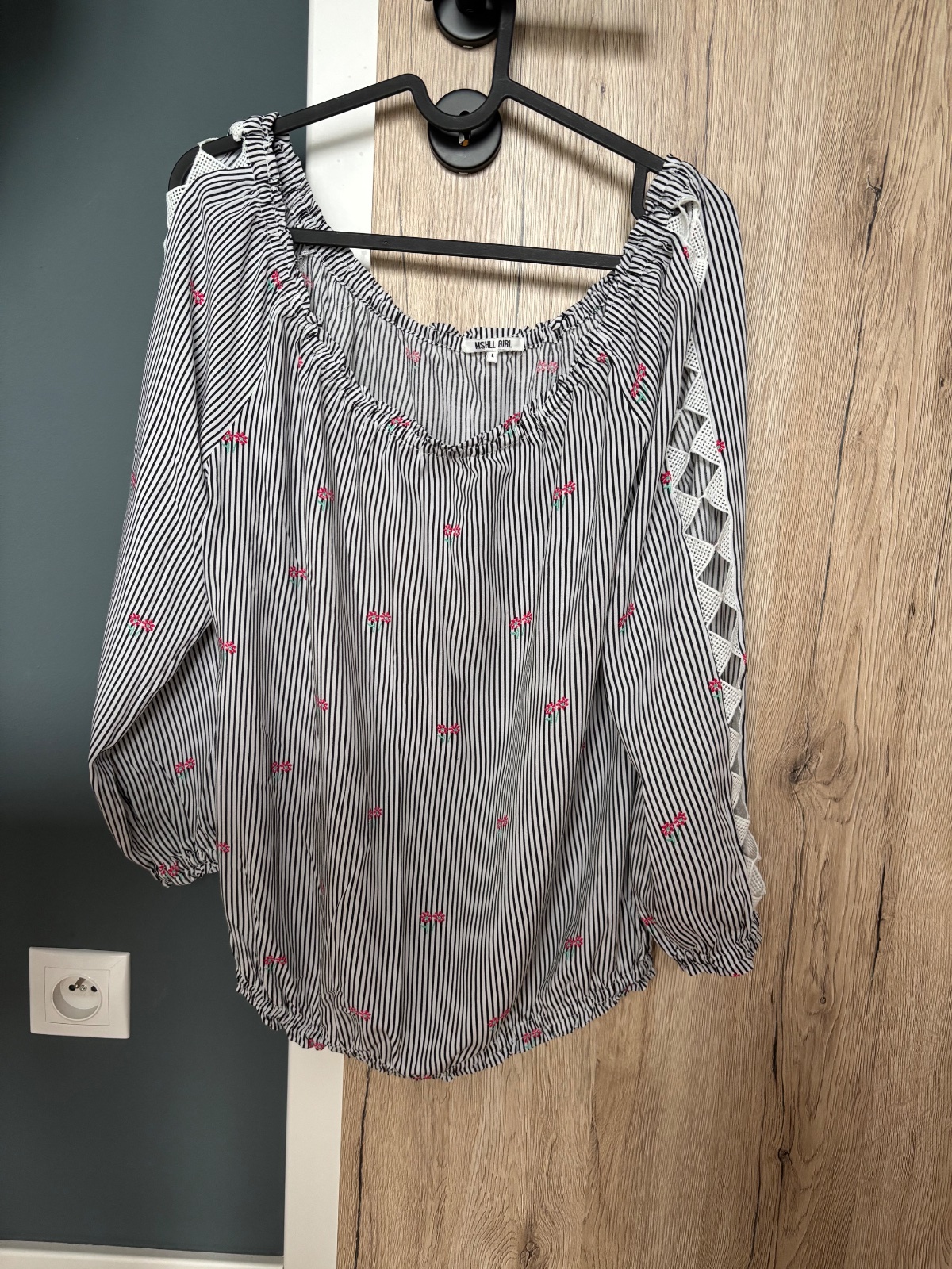 Blúzka/košeľa oblečená max.2x, je vo veľmi dobrom stave. Bavlna. šírka cez prsia 51cm, cez pás 49cm, dĺžka 66cm, rukáv od ramena 58cm. Vnútri veľkosť XL, ale skôr L.