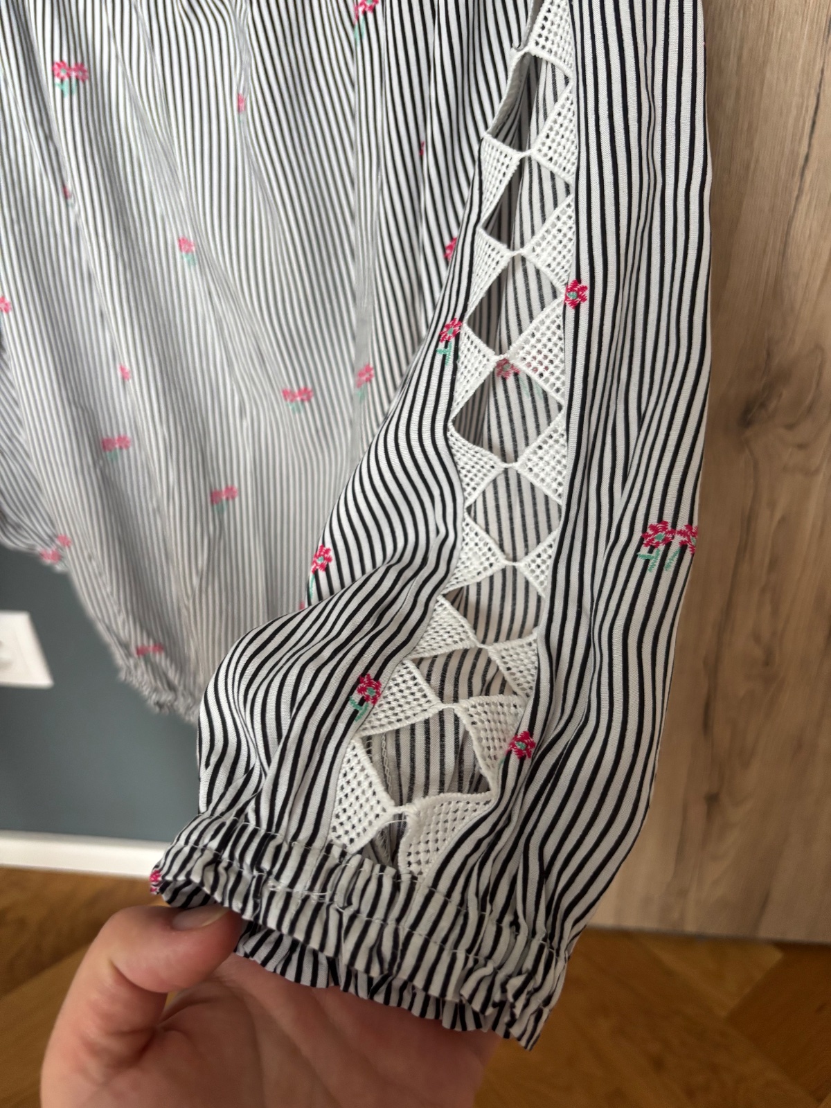 Top stav raz použitá , krásna blúzka ,príjemný materiál , krasné prepracovaná ...hodí sa všetkému ,nohaviciam,rifliam ,sukne ,kratase ...no proste topkaa👌