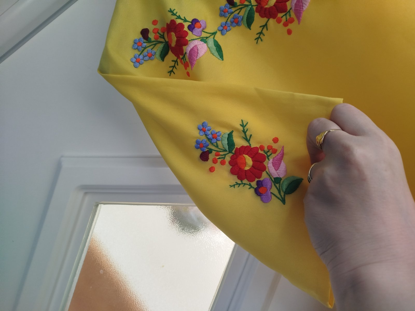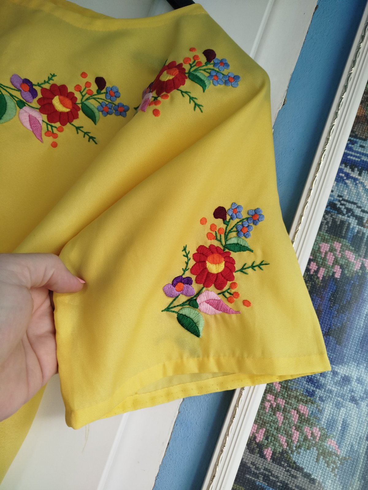 - pekna, ručná práca, málo nosena, iba príležitostne, napriek tomu pri fotení som našla jemne mini bodky vzadu, odfotene - posledné 2fotky, nie je to vyrazne, rozmery pofotene