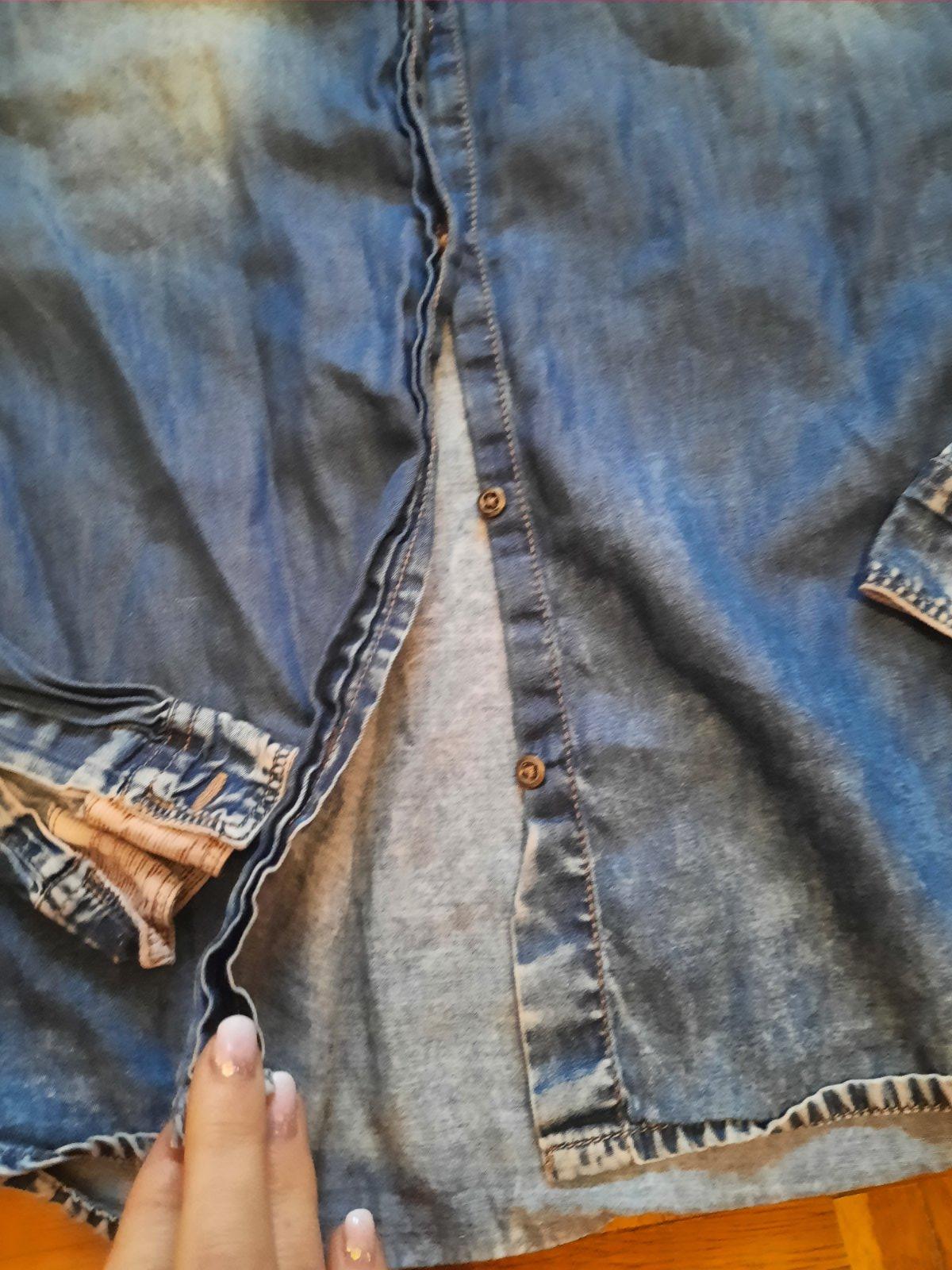 Super tenšia džínsová košeľa. Imitácia vačkov vpredu. Zapínanie je na maličké gombíky.