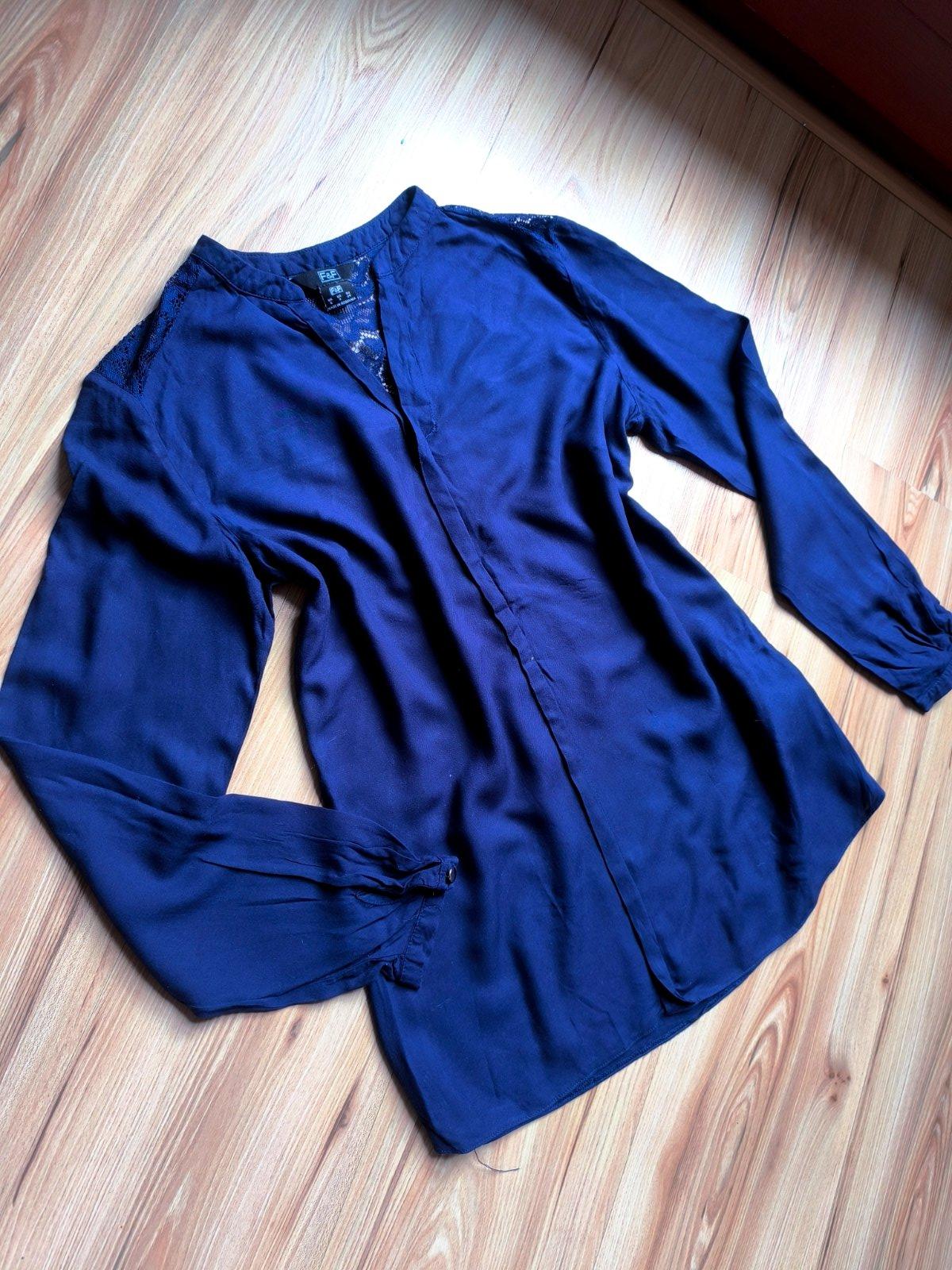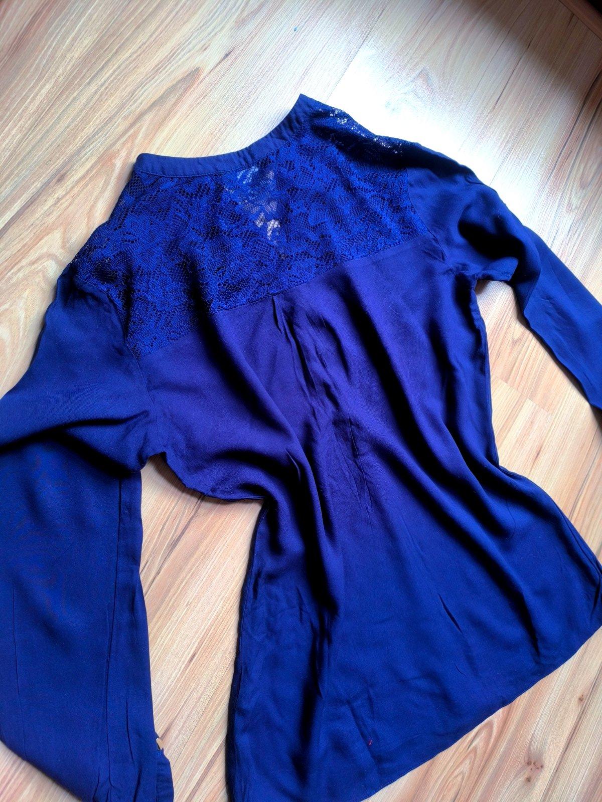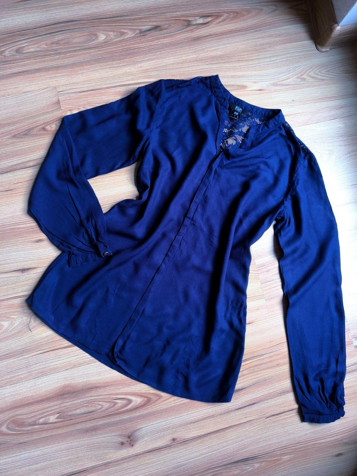 Veľmi príjemná, pohodlná blúzka, na vrchnej časti chrbta čipka, obliekanie cez hlavu, zlaté gombíky. Uvedená veľkosť 34, ale sedí skôr na S. 100% viskóza. Oblečená 2-3 krát, perfektný stav.