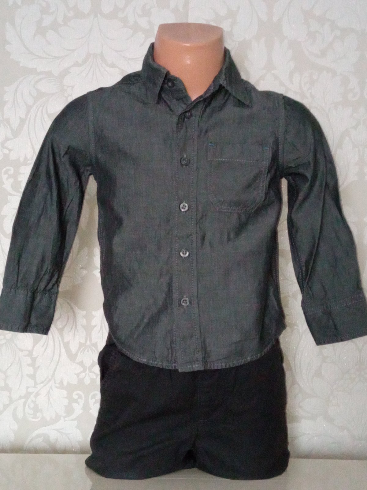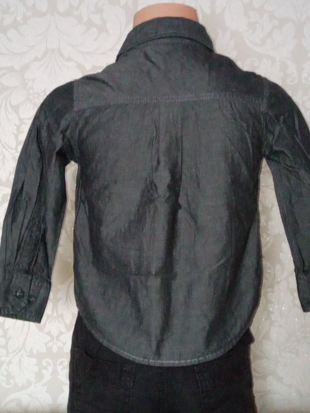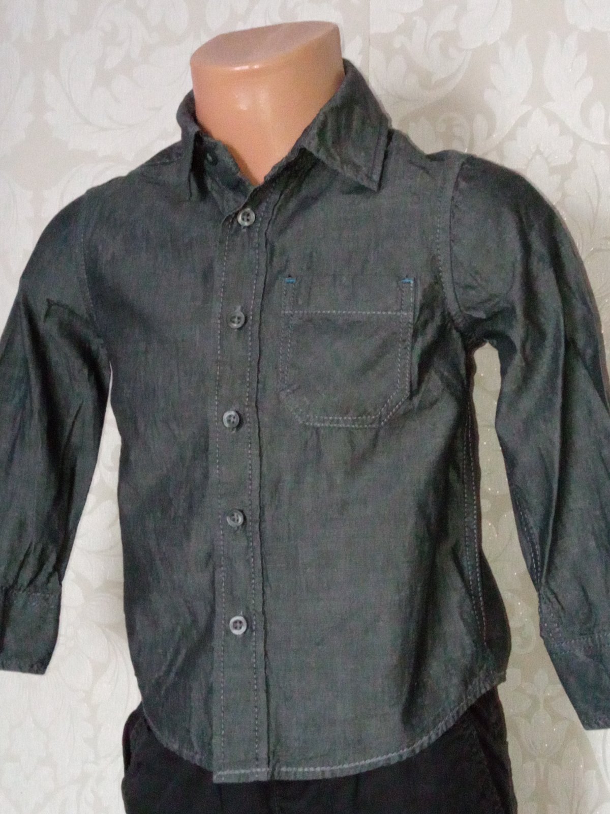 Chlapčenská jednofarebná košeľa s dlhým rukávom.