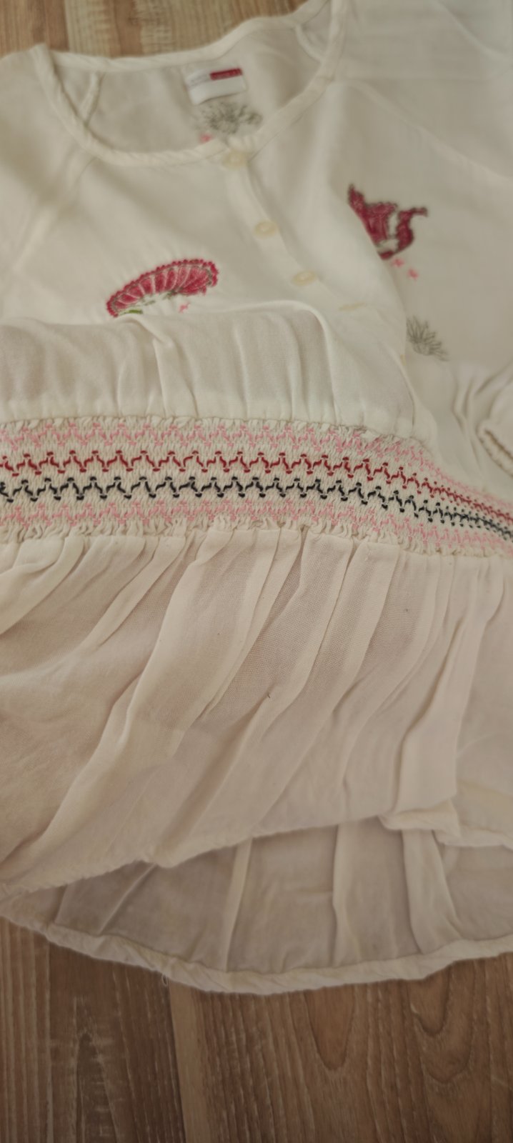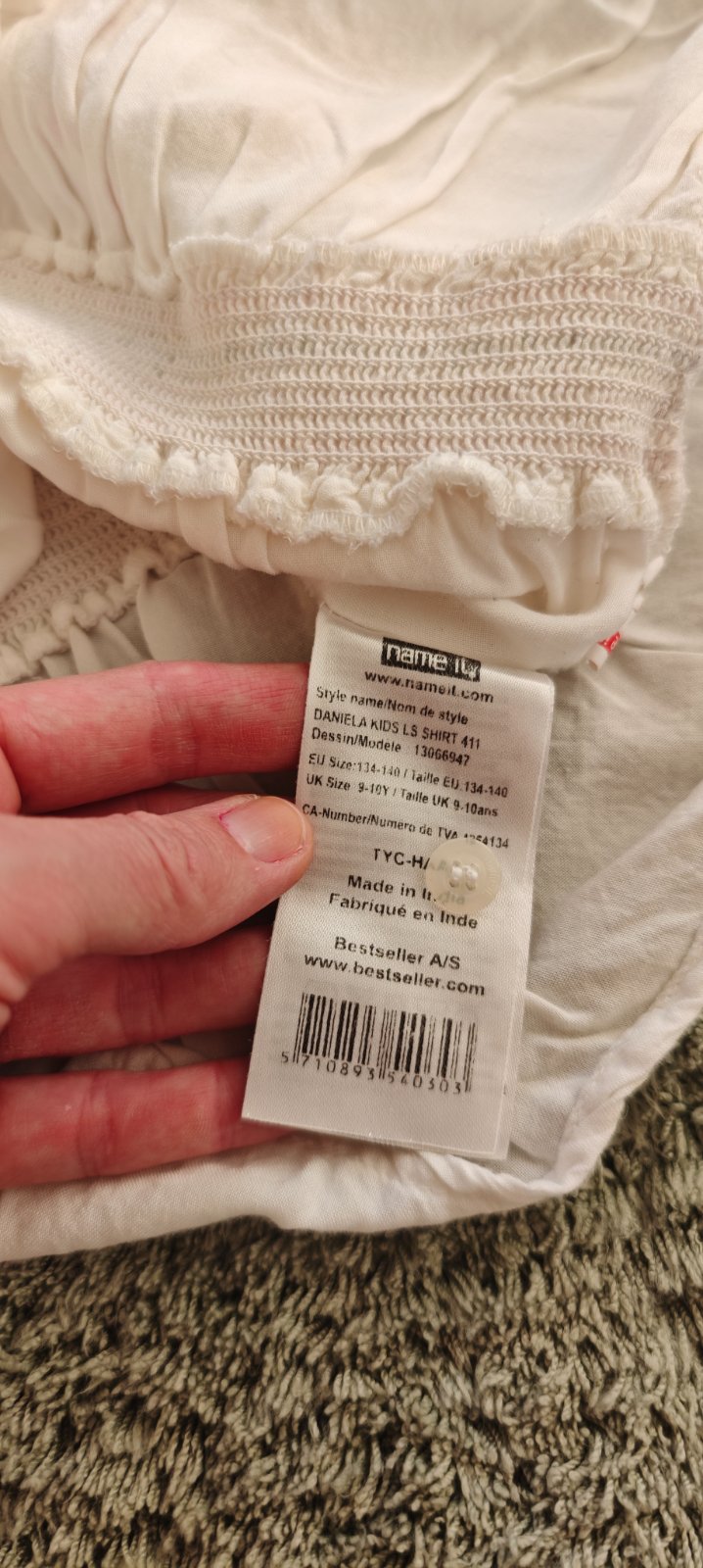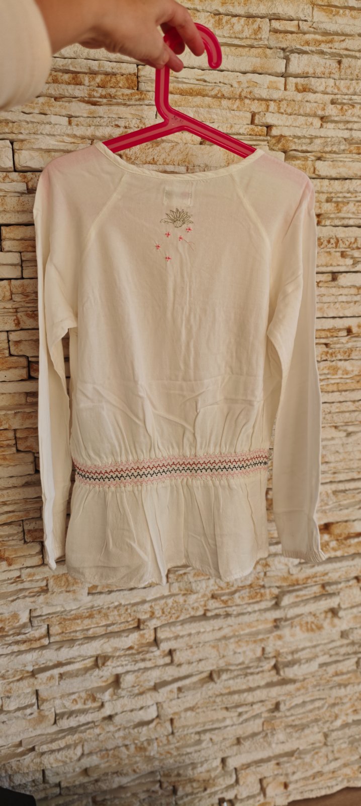 Predám zaujímavú bielu blúzku s dlhými rukávmi a výšivkou, značky name it. Blúzka je jemnulinka, na rukávoch a v páse do gumičky. Osobný odber v Petržalke. Poštou pošlem po pripísaní platby na účet.
