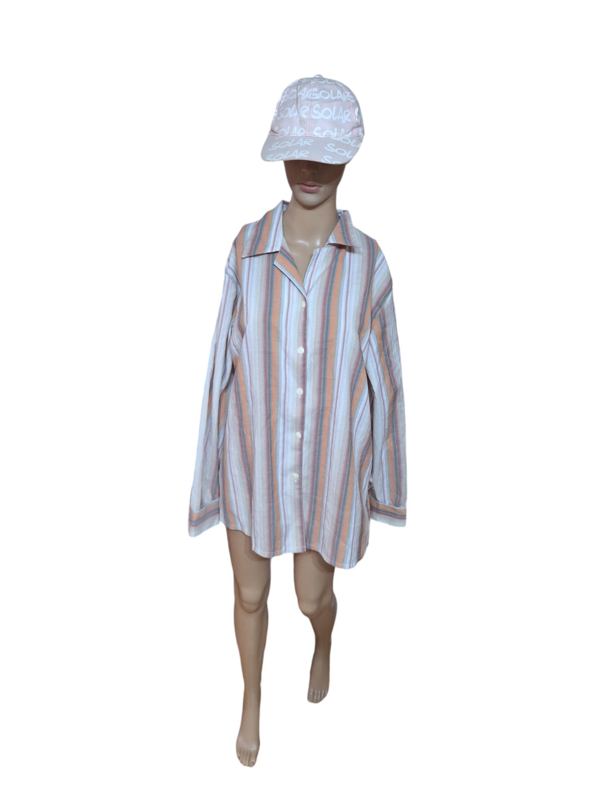 Pánska pásikavá košeľa značky N&P. Dolu po bokoch sú 14cm rázporky. Dĺžka je 70cm,obvod hrudníka je 120cm a obvod pása je 120cm. Dĺžka rukáva je od krku 75cm. kód 210