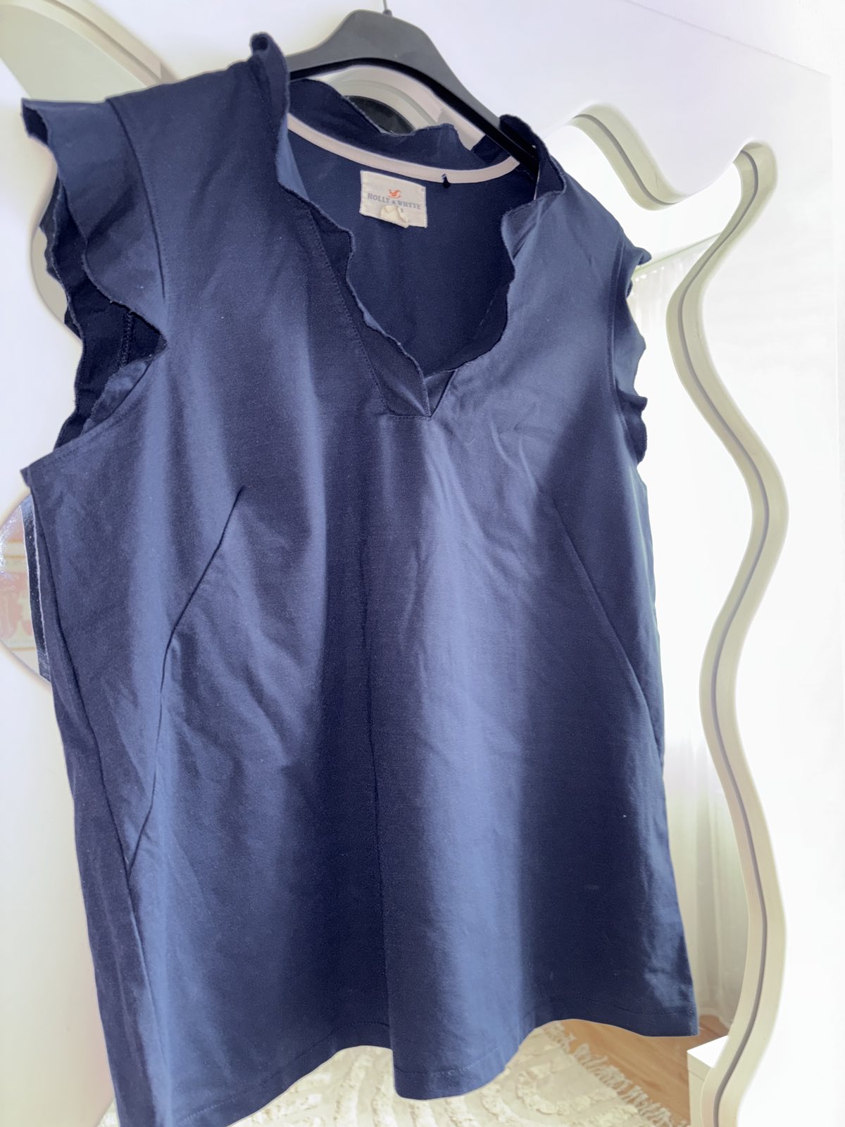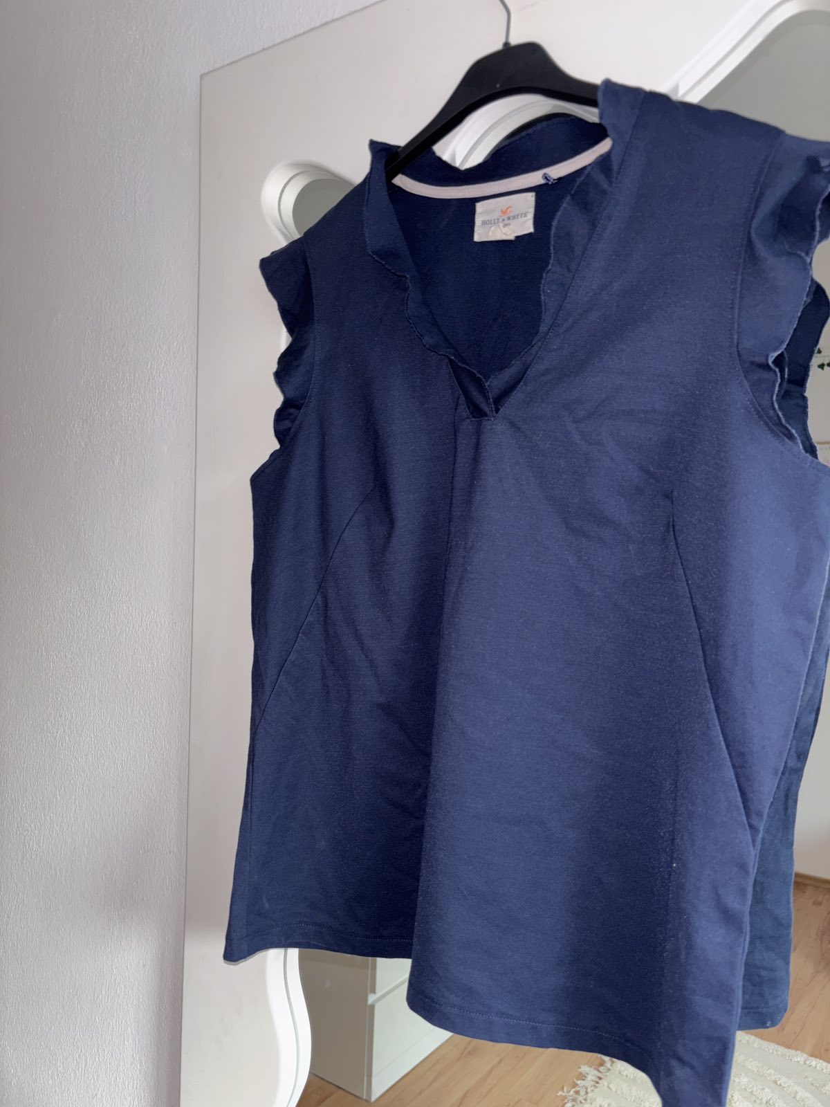 Výborný stav, pružný, modrý, veľkosť M,sedí aj na L, s.pod pazuchami 52 cm, d. 65 cm