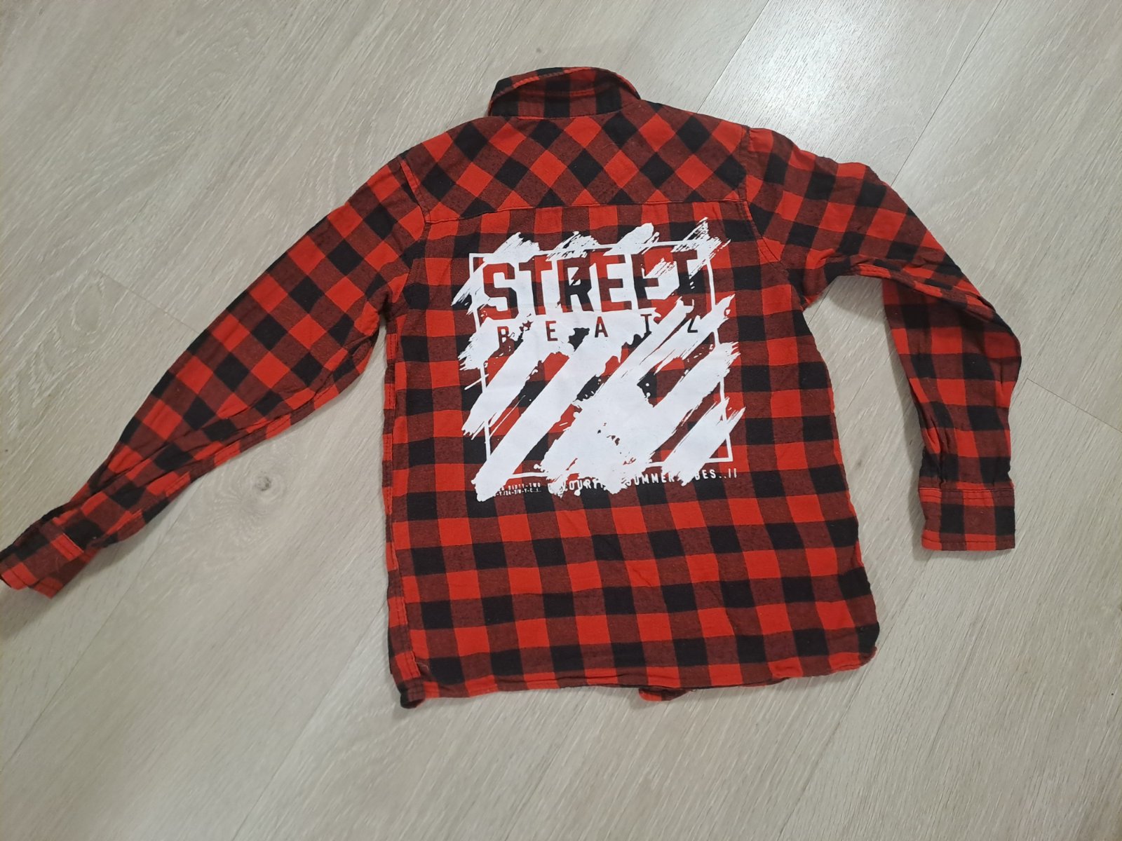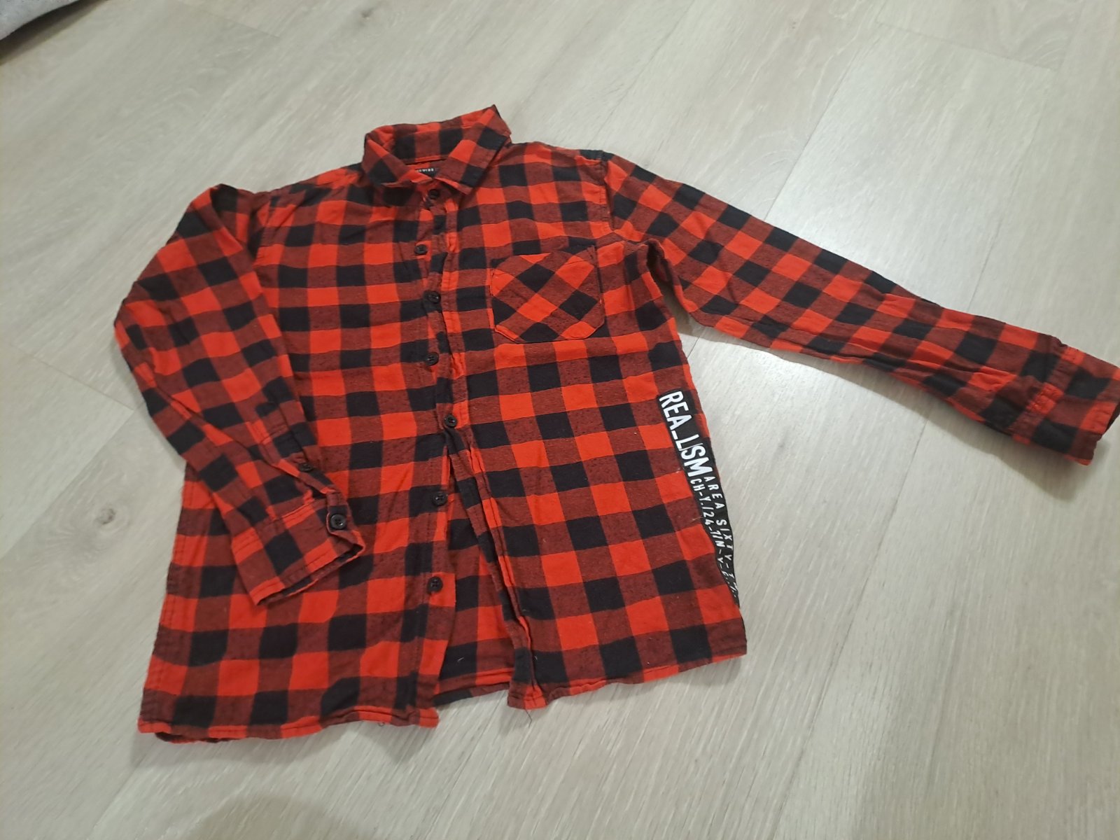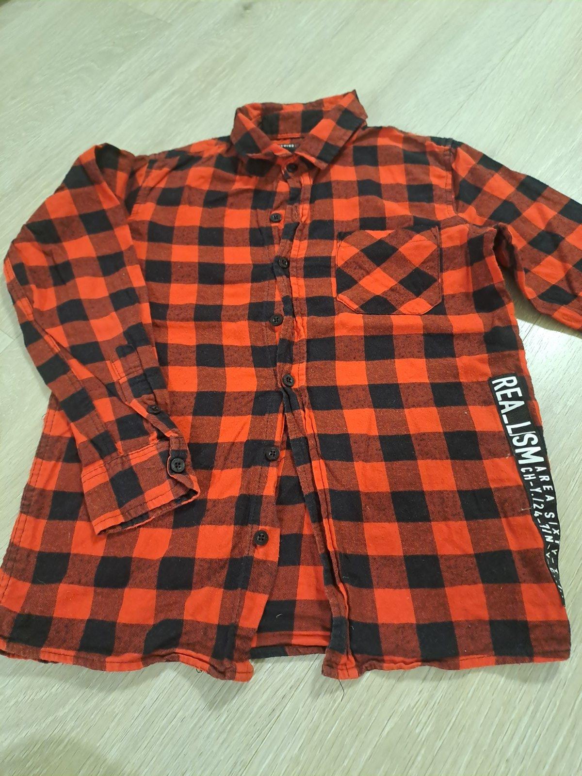 Predám zachovalú košeľu C&A z tenšieho flanelu, bez poškodenia Zapínanie je na patentné gombíky. Uvedená veľkosť 134/140. Rozmery: dĺžka 56,cm, šírka pod pazuchami 40cm, rukáv od goliera 60cm.