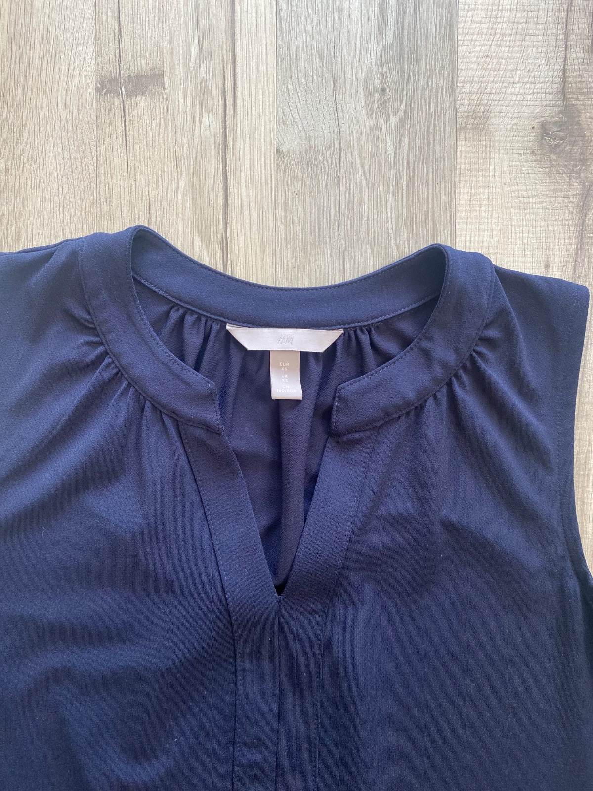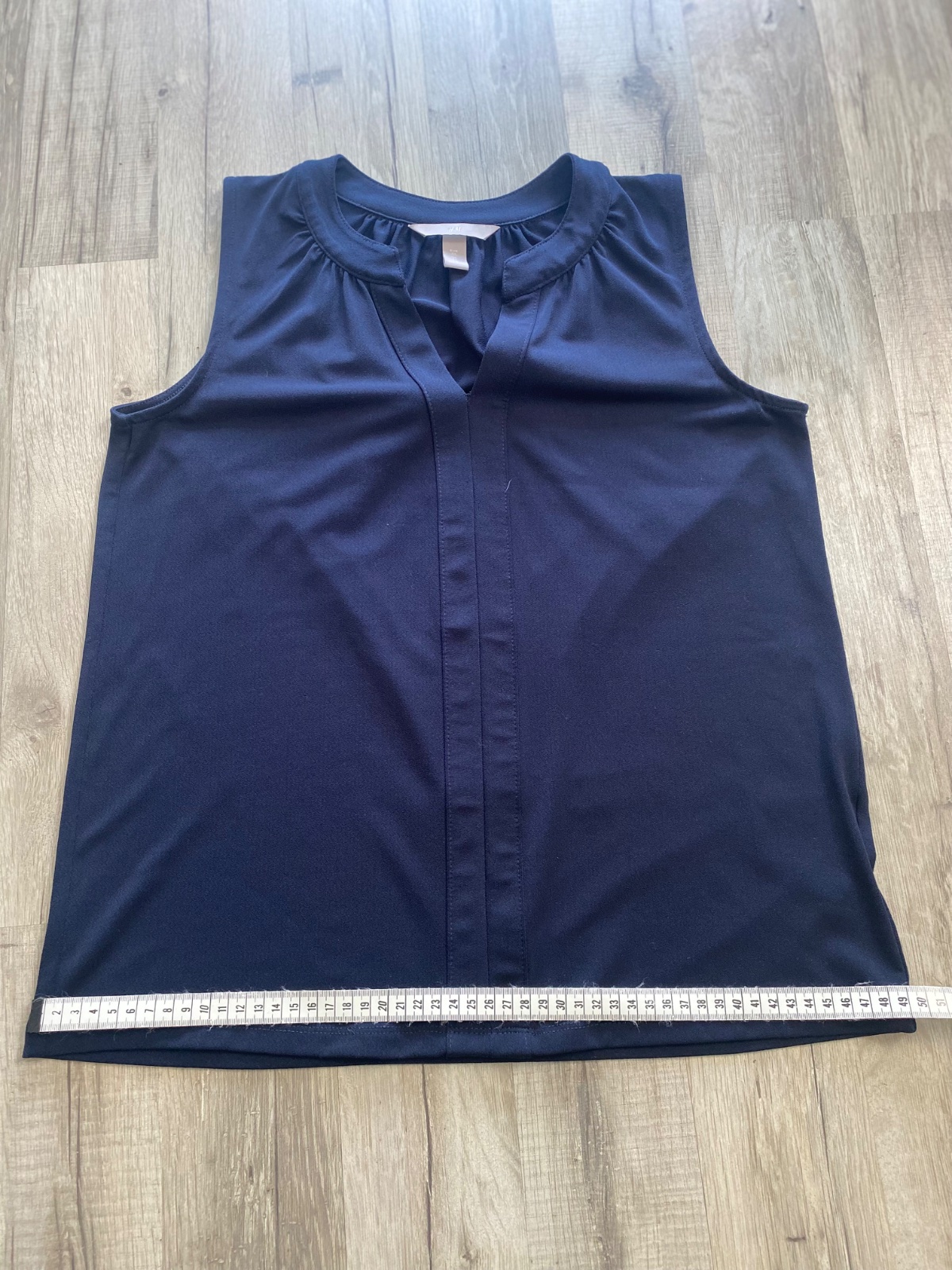 Tmavomodrá blúzka značky H&M, iba pár krát oblečená, bez poškodení. V skvelom stave. Písaná veľkosť XS, rozmery na foto. Voľný strih. Cena 6€ + poštovné