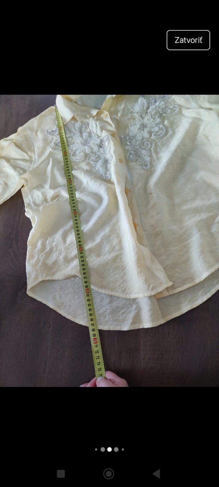 dámska košeľa v žltej farbe, vzadu predĺžená, ľahká a voľná - veľkosť UNI, rukávy 3/4 a možnosť zapnúť vyššie