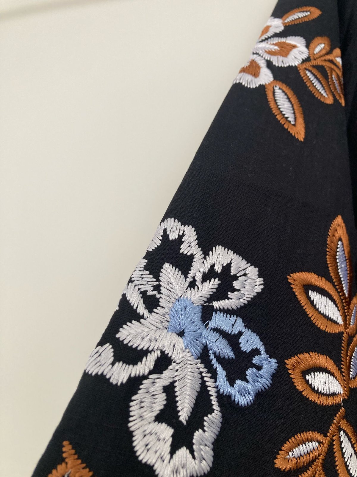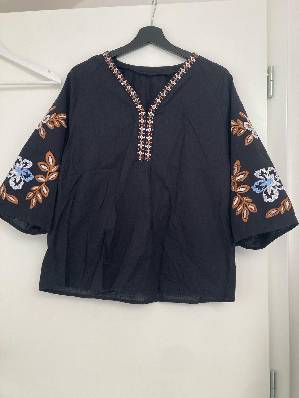 Predlzena cierna kosela, bluzka s 3/4 rukavmi. Rukavy su na predlakti zohnute (da sa aj vystriet). Nosena zachovala. Dlzka 75 cm. Sirka 45 cm