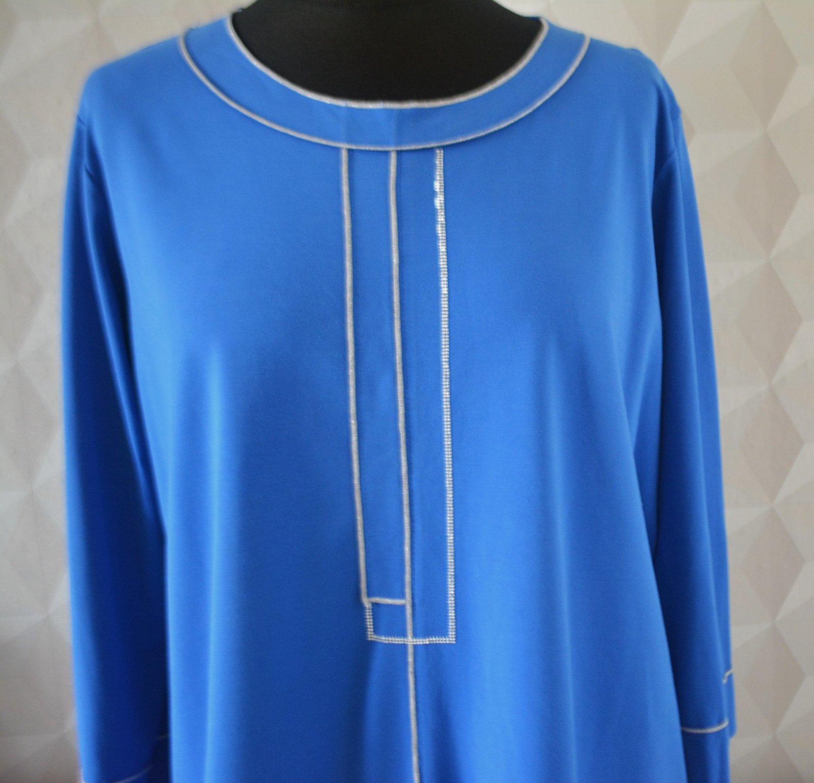 Kvalitný, elastický, krásna modrá farba v kombinácii so striebornou aplikáciou.