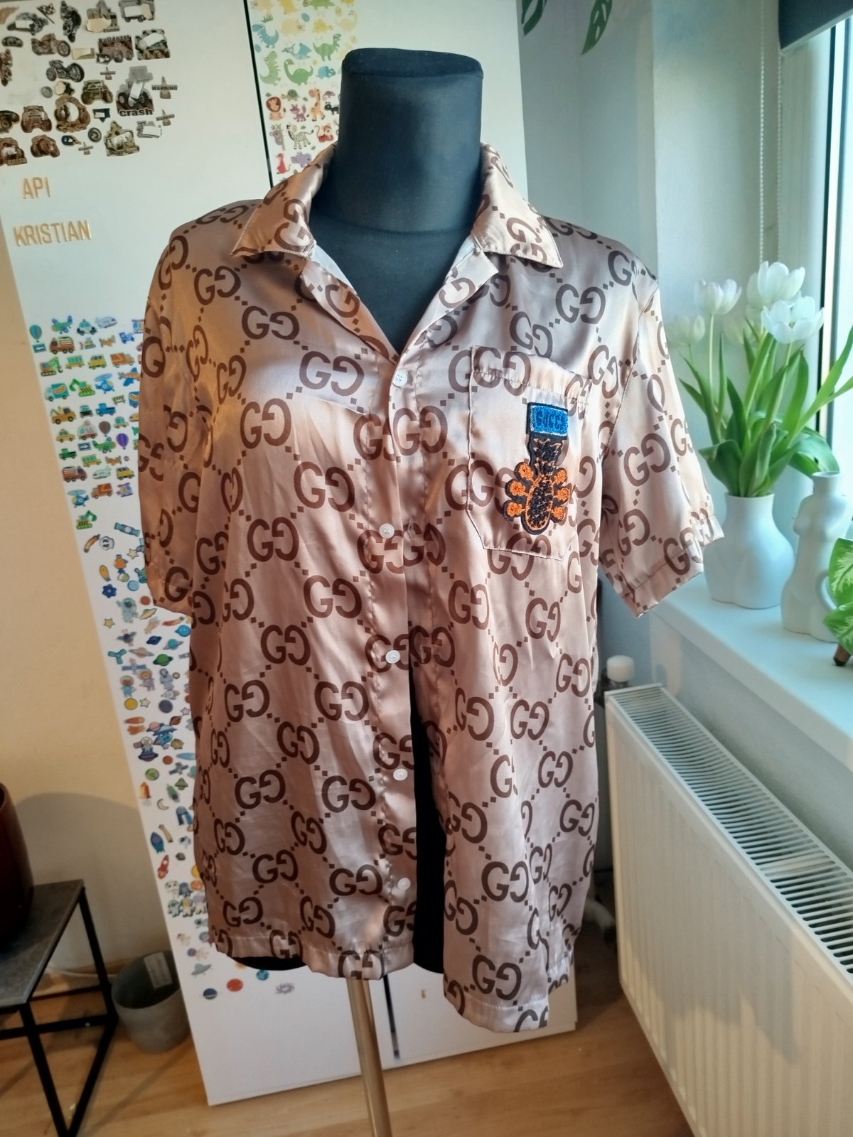 Saténová košeľa z krátkym rukávom veľ.uni