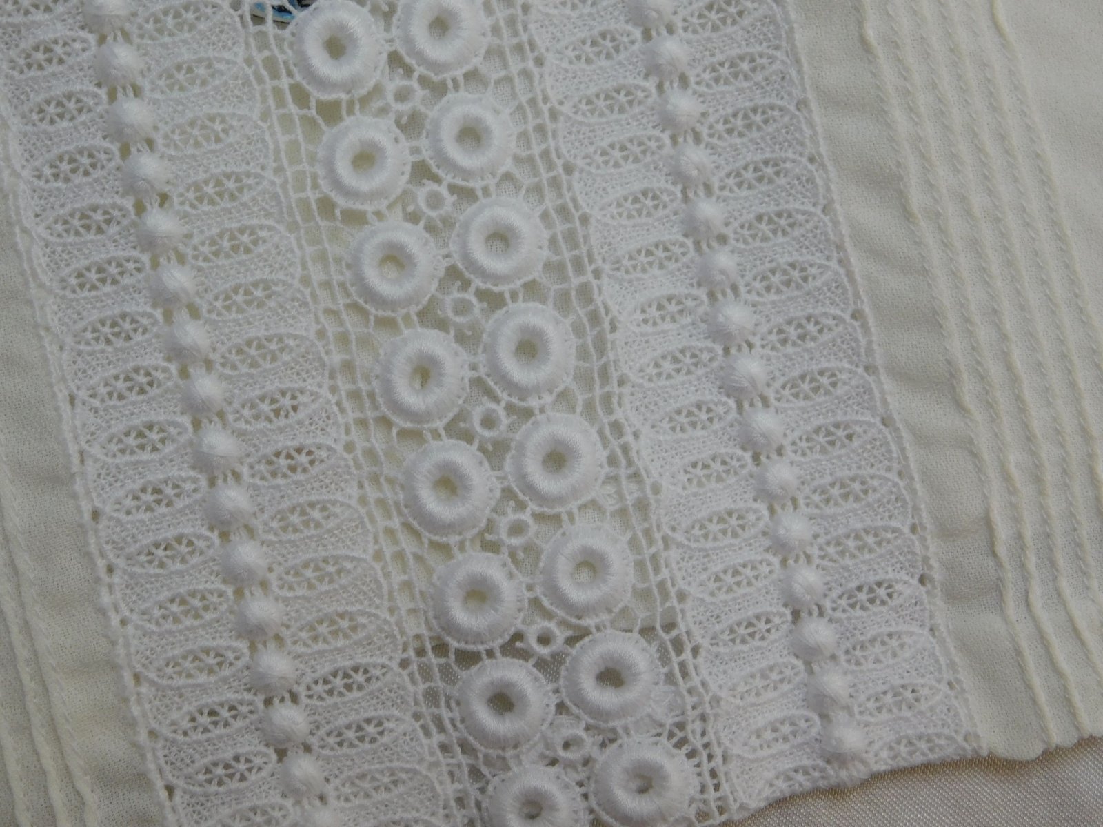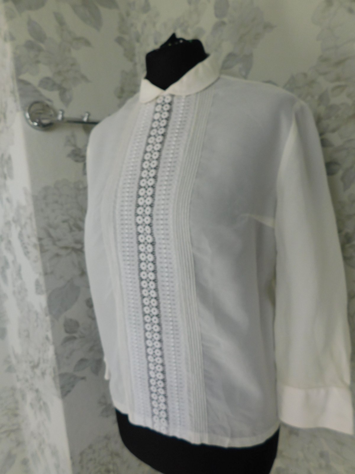 Luxusna vintage bluzka,smotanovej farby,vpredu zdobena hačkovanou čipkou,vzadu zapinaie na gombiky. super stav. se26