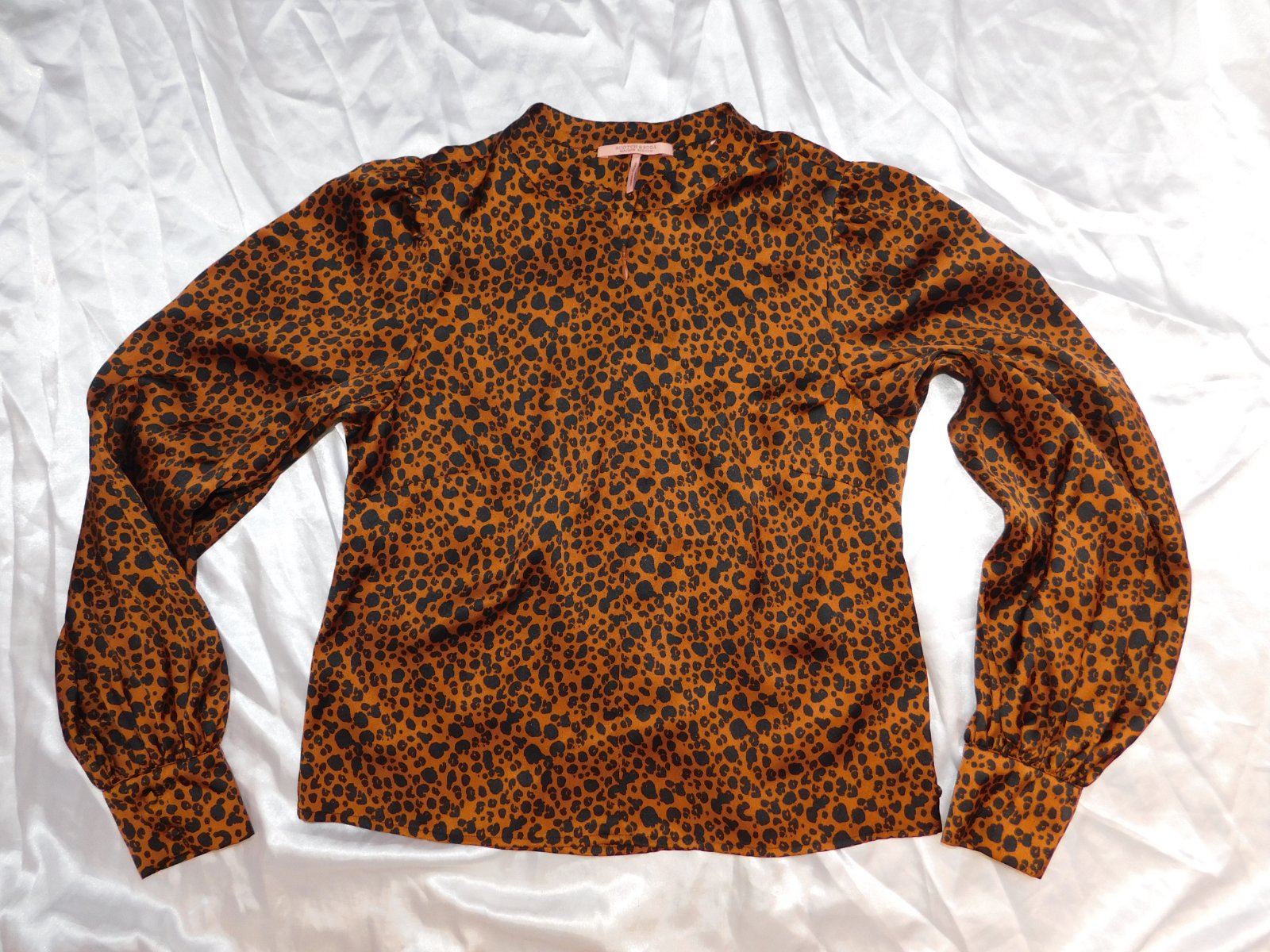 SCOTCH&SODA Luxusna bluzka škoricovej farby leo vzorom.100%polyester.nova,len bez visačky. se37
