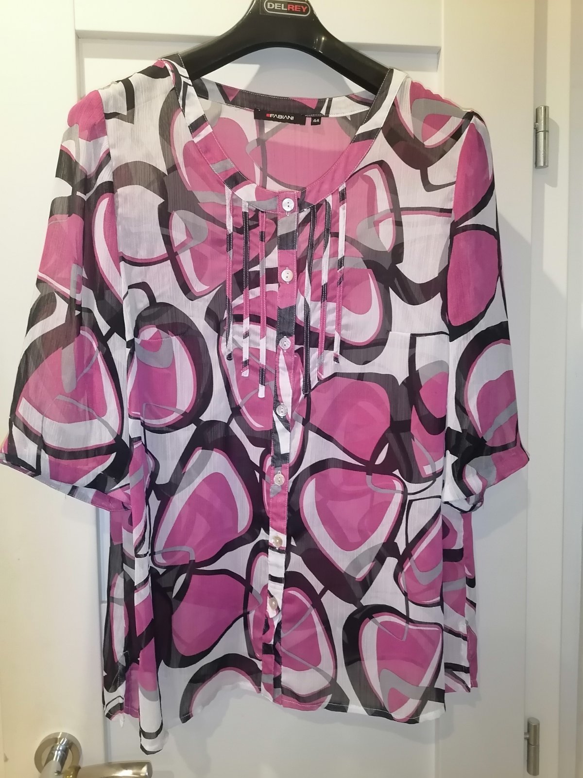 Predám dámsku blúzku zn. Fabiani, veľkosť 44. Ma skrátené rukávy na 3/4. Osobný odber možný v BA. Cena 6 Eur plus poštovné, posielam aj Packetu.